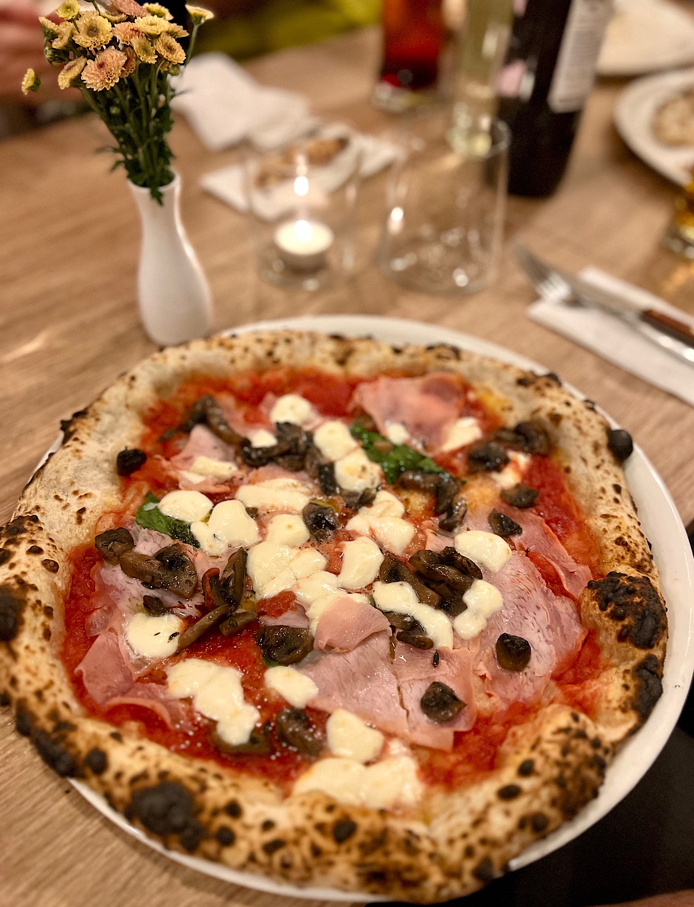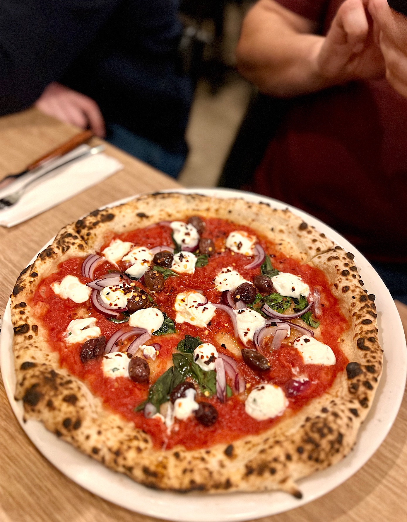 Klasyk nad klasyki – Margherita Di Bufala DOP (37 PLN) z pomidorami San Marzano, oliwą i świeżą bazylią.