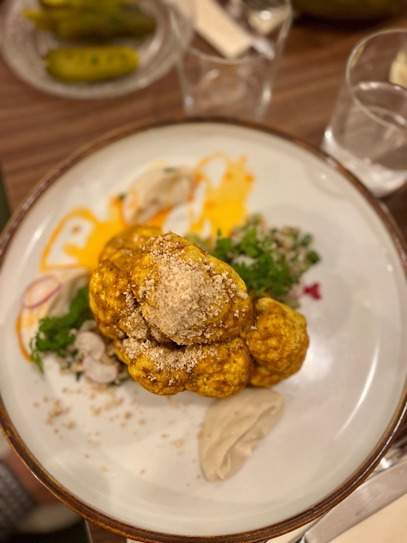 No i zastawa. Pasująca do dań, bez przerostu formy nad treścią i wkładania czegoś co powinno być na płaskich talerzach do miseczek – przemyślana i atrakcyjna wizualnie.