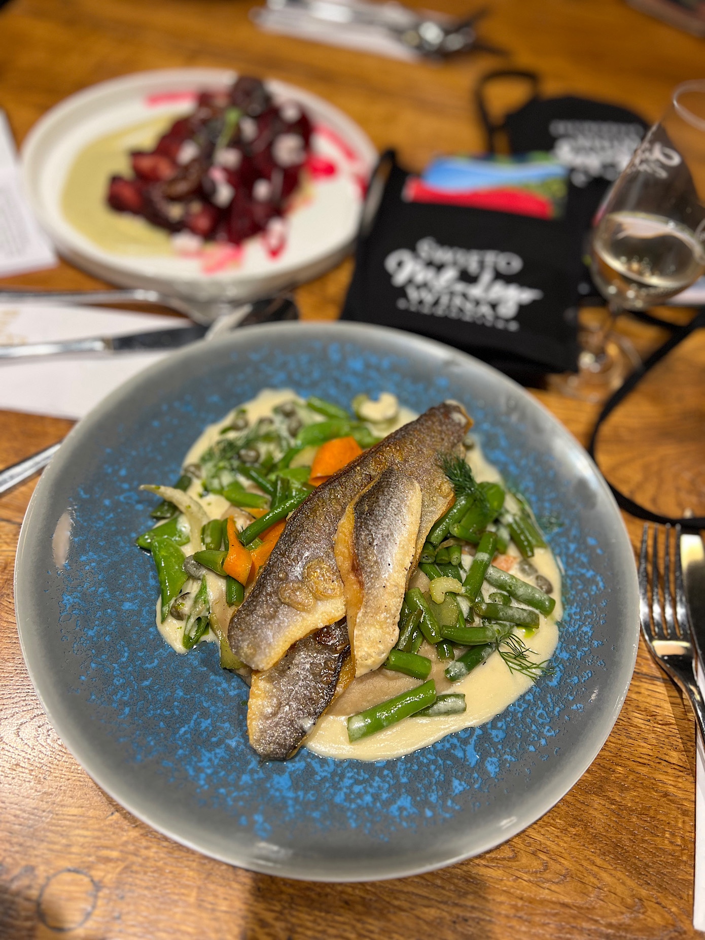 Od lewej widzicie: marynowaną w cydrze pierś z gęsi (86 PLN), kopytka z buraka i lędźwianu (53 PLN), okonia morskiego (69 PLN) oraz gulasz z polskiej sarny ze Zwierzyńca (54 {PLN).