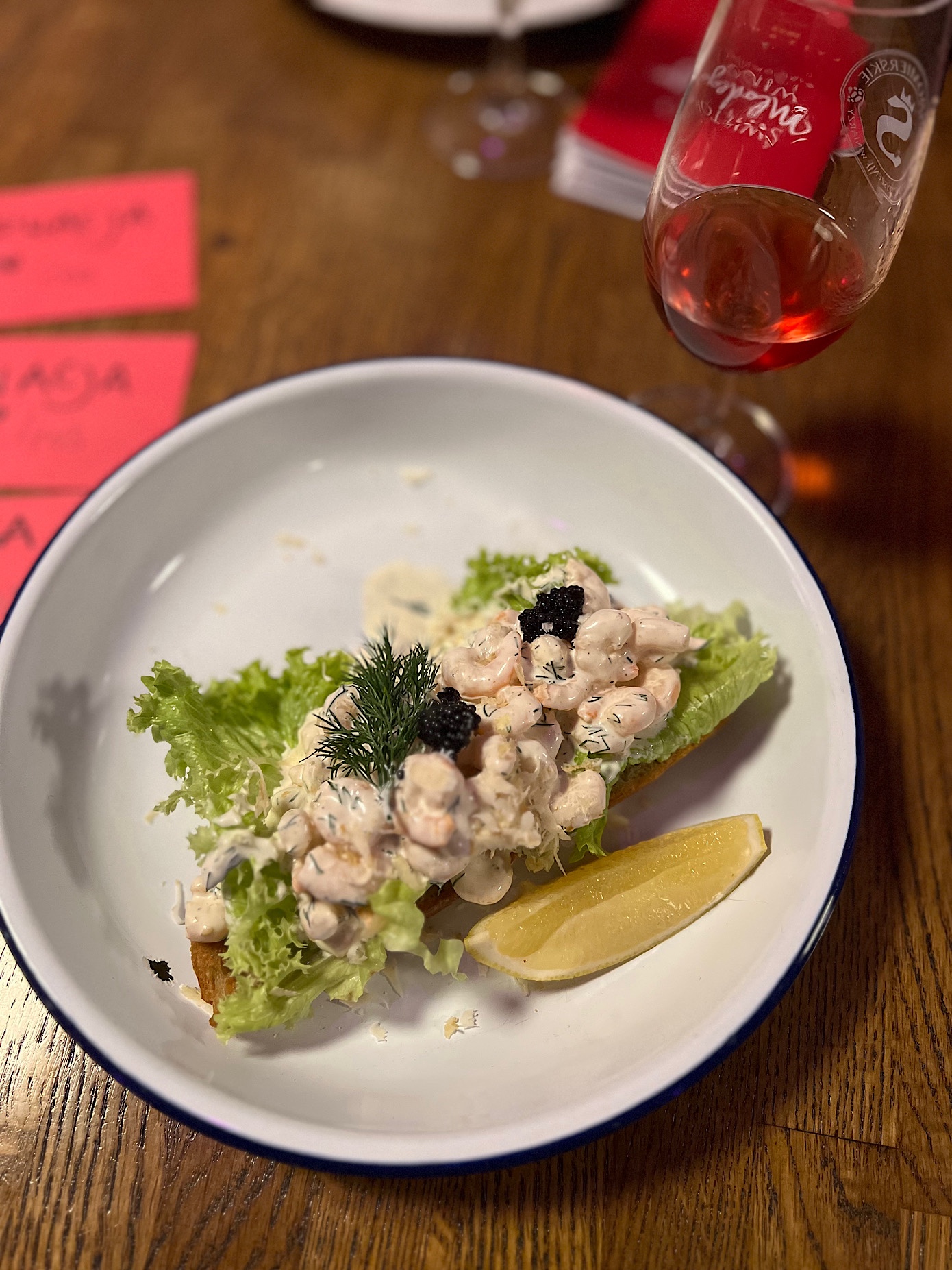 Byłem tu lata temu i dobrze wspominam. Podczas Festiwalu Młodego Wina skusiłem się na pięknego Jasia z chorizo i wędzonym boczkiem (39 PLN) oraz Tost Skagen z koktajlowymi krewetkami w stylu skandynawskim (35 PLN).