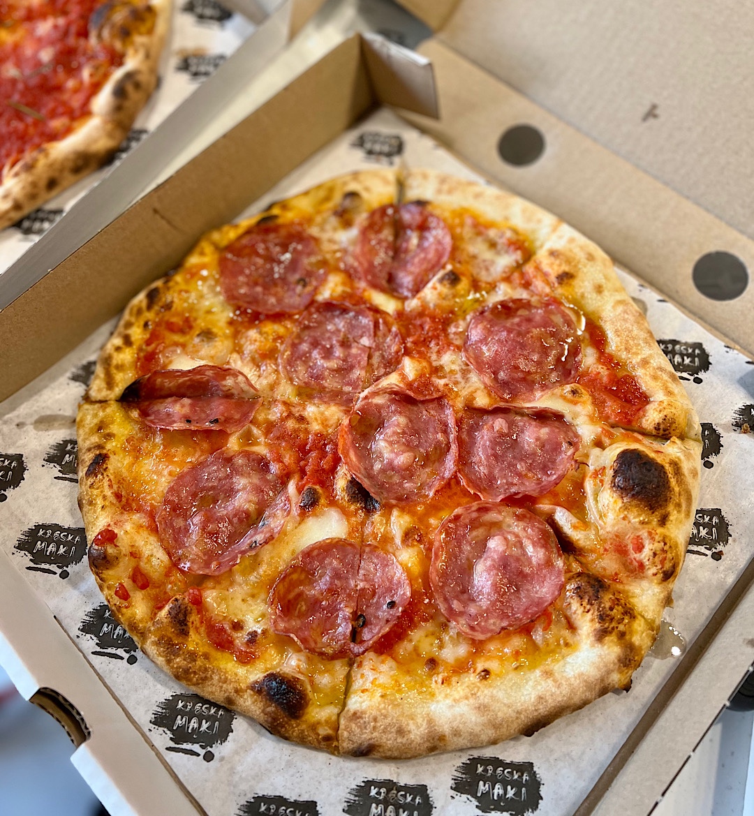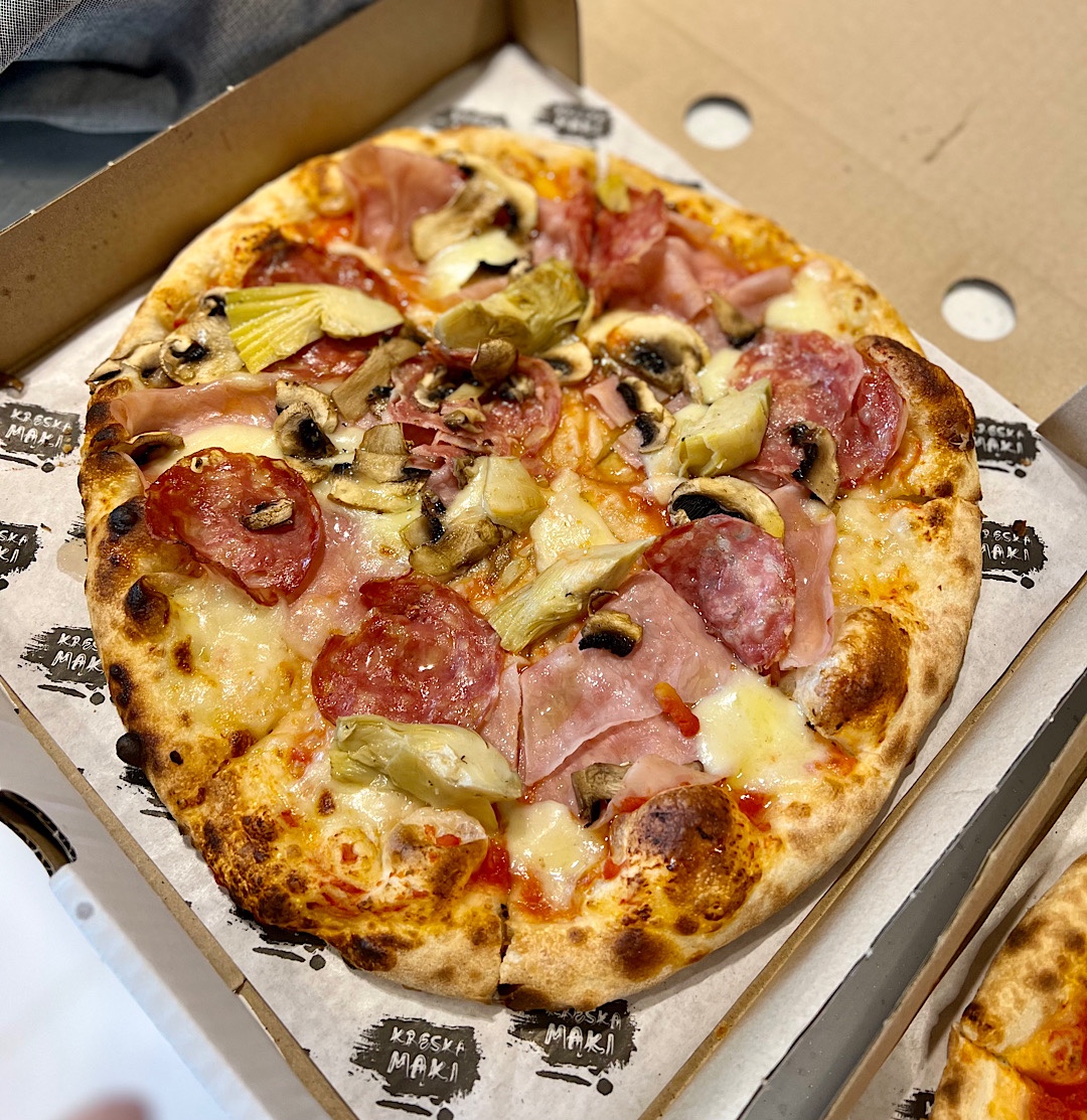 Ostatnim razem początkiem grudnia 2023 wrzuciłem na ruszt wegetariańską Pocahontas (36 PLN). Piekność z oliwkami, szpinakiem, suszonymi pomidorami oraz mascarpone dosłownie oczarowała moje podniebienie.