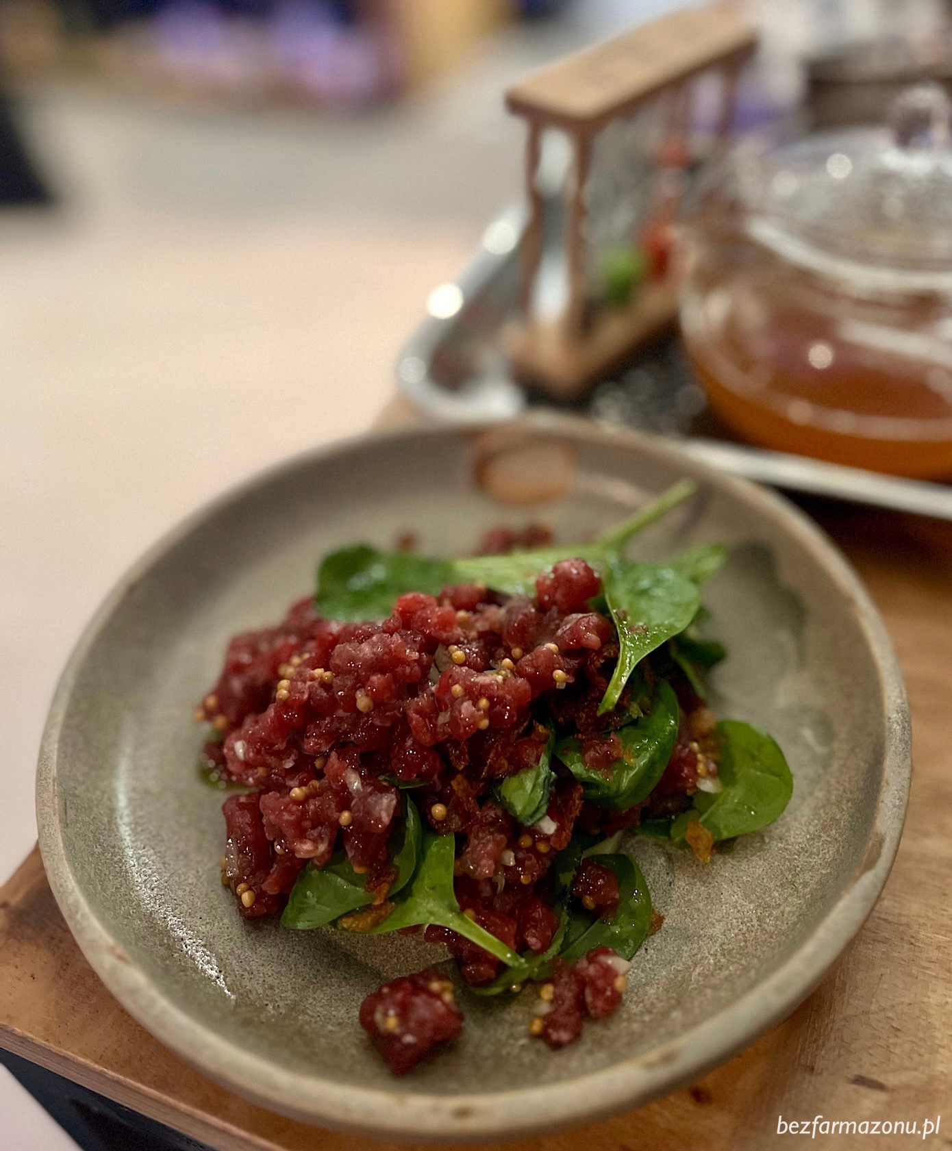Posiedzenie rozpoczął tatar z polskiej wołowiny z ziemniaczanymi chipsami oraz gorczycą (39 PLN). Z racji trwającej diety pescovege nie był mi pisany, lecz towarzysz wyraził się o nim pozytywnie.