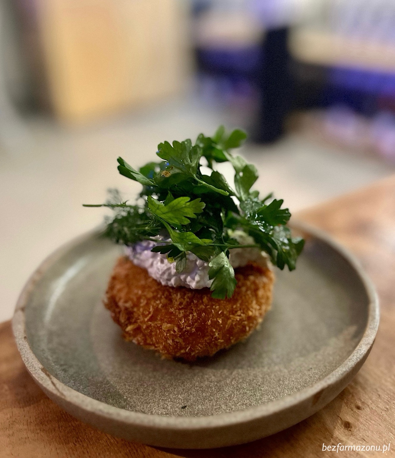 Zaraz za nim na imprezę wjechał delikatny śledź matjas z obłędnym musztardowo – miodowym sosem, piklowaną cebulą, gorczycą i ziołami (31 PLN) oraz smażony, ciągnący się jak diabli włoski, krowi ser z przepysznym sosem tarskim (37 PLN).