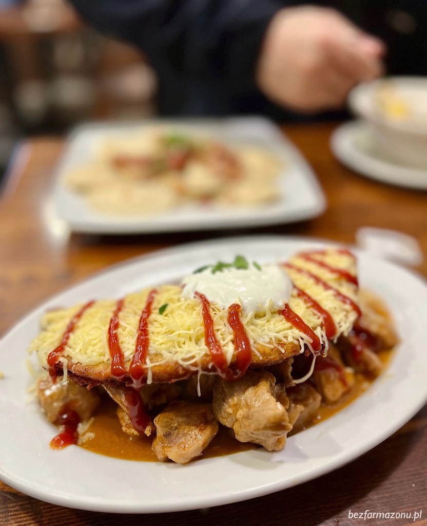 Sz. placek po węgiersku (29 PLN) nie spalony z dobrymi kawałkami wieprzowego mięsa z małą ilością tłuszczowych przerostów.