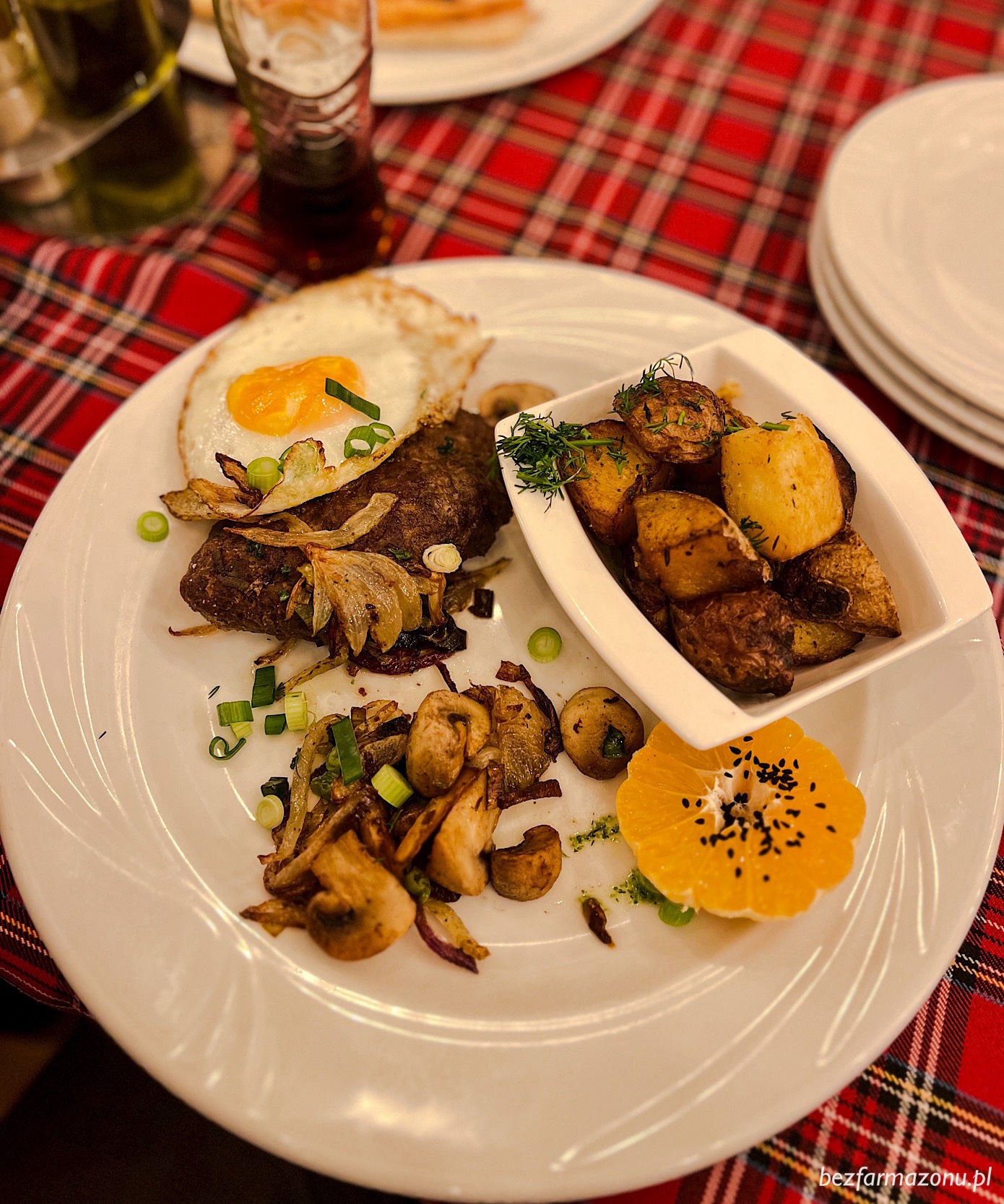 I. pochwaliła placki ziemniaczane z wołowym gulaszem (40 PLN) za dobre wysmażenie i miękkie mięso,