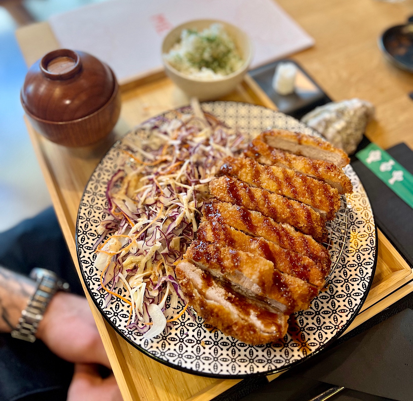 Z tymi samymi dodatkami podaje się również Tonkatsu (29 PLN) czyli wieprzowe, panierowane kotlecisko.