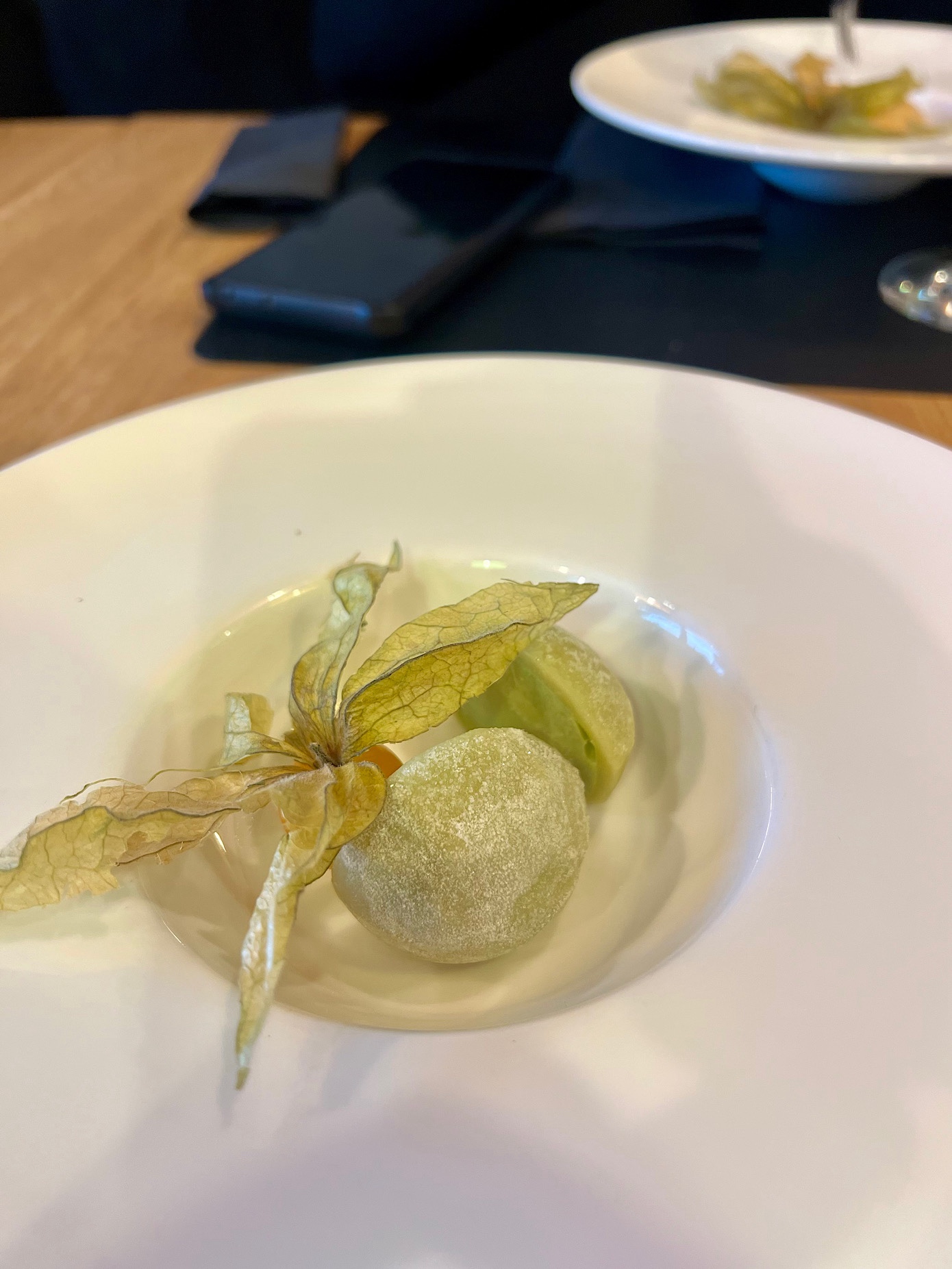 - opalana płetwa turbota z półrocznym sosem ponzu