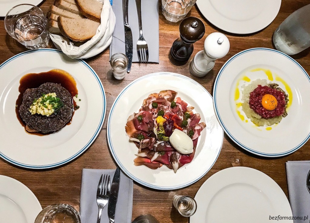 • plastry dojrzewającego antrykotu Hereford z piklami i crème fraiche (34 PLN) bez zarzutu. Pachnące, cienko krojone mięso wraz z super kremową, tłustą śmietaną.