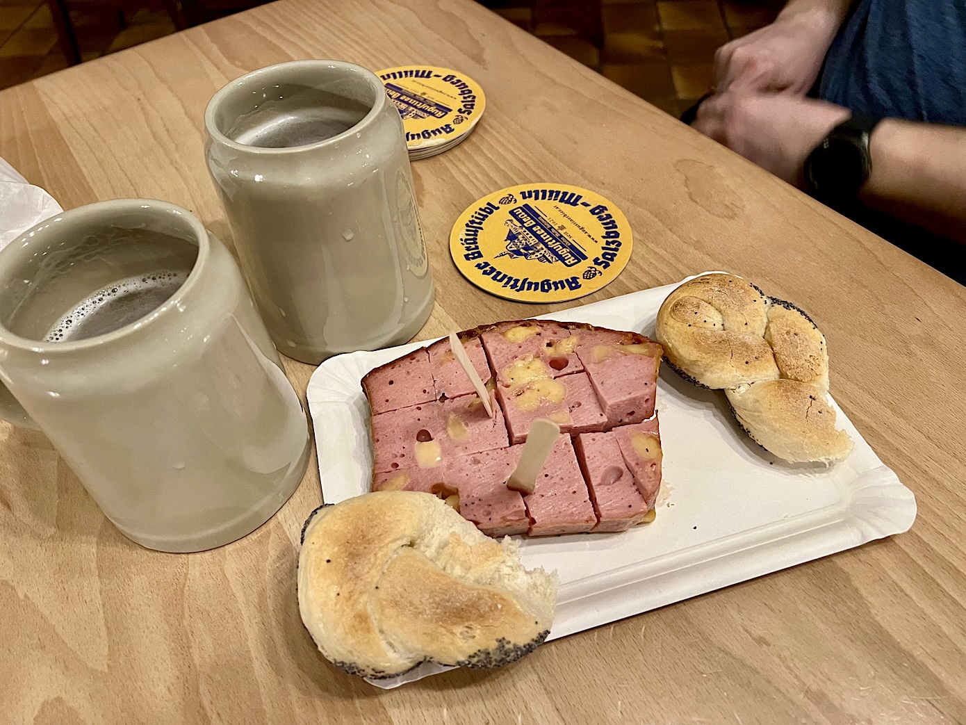 Ogromny browar z kilkuset letnią tradycją serwuje tylko i wyłącznie dwa rodzaje piwa – jasne pils i marzen. Każde z nich możecie poprosić w kuflu 0.4 lub litrowym.