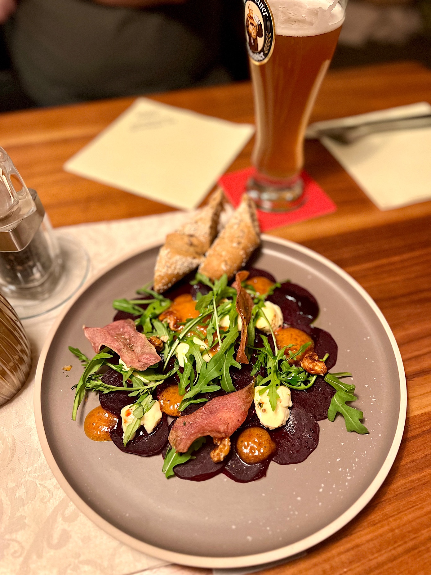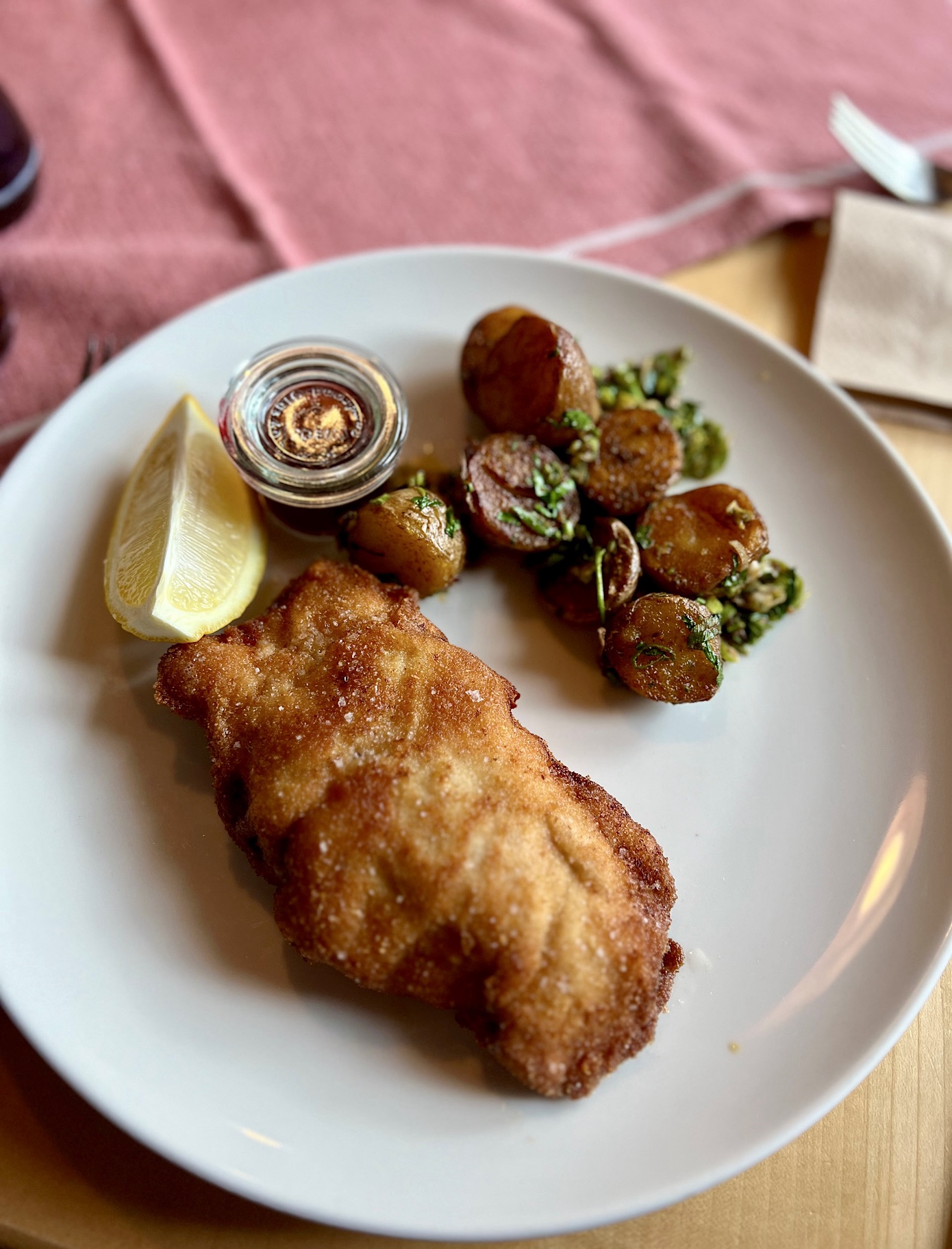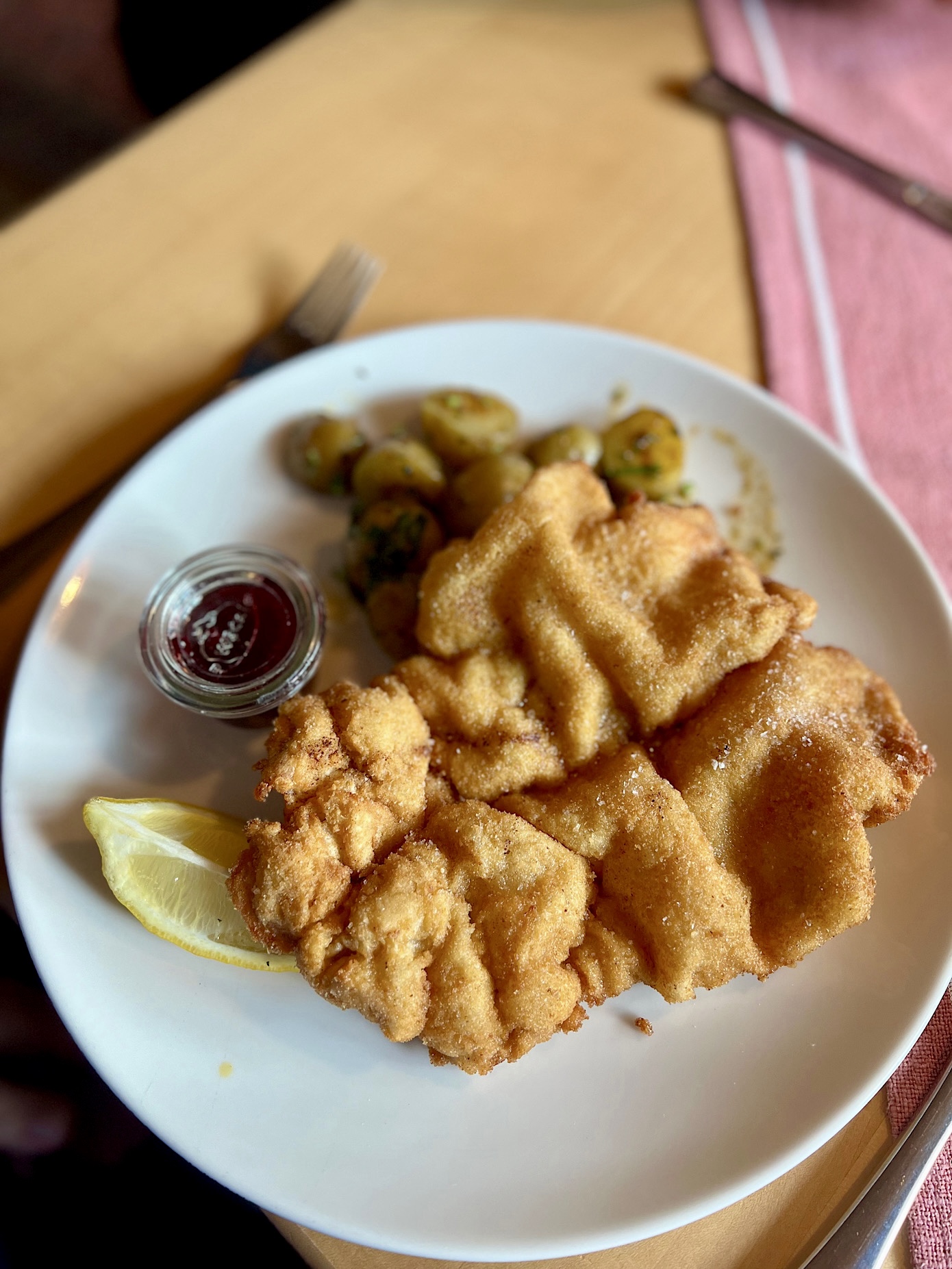To właśnie tutaj zrobiliśmy test polegający na zamówieniu trzech sznycli z różnymi mięsami i właśnie w tym gasthousie doszliśmy do wniosku, iż różnica pomiędzy opanierowaną cielęciną, a wieprzowiną jest tak subtelna, że nie warto do niej dopłacać siedmiu euro.