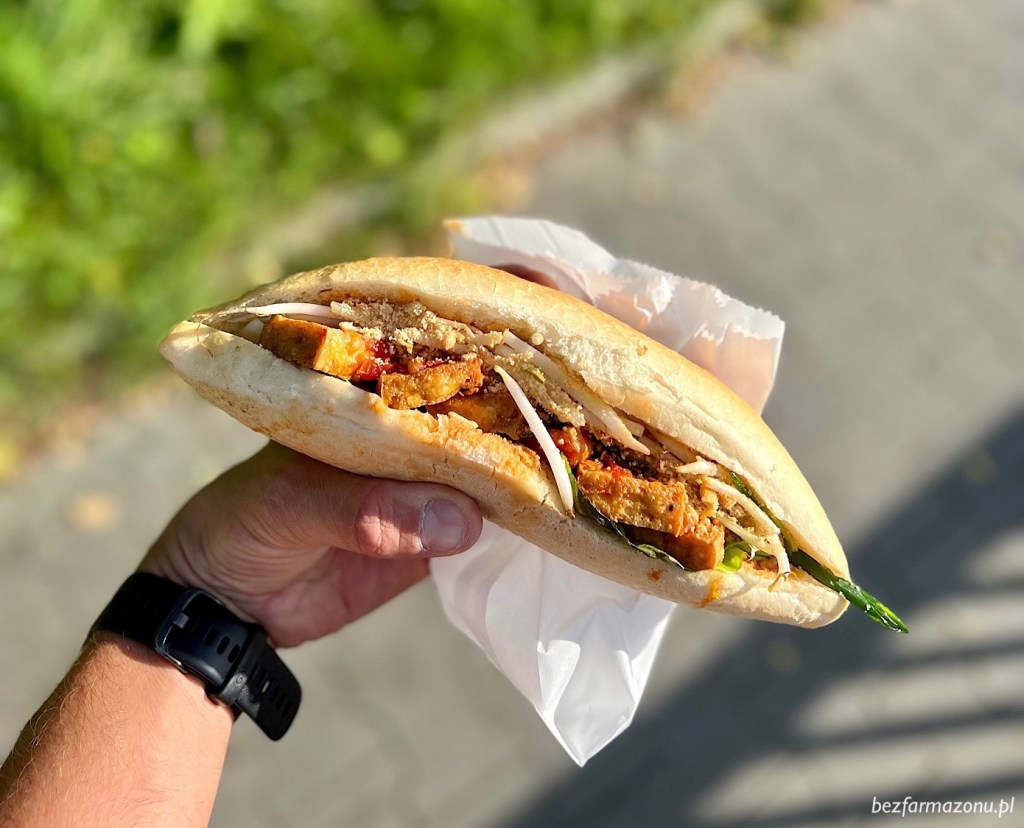 We wrześniu 2023 upolowałem wegetariańską bagietę z chrupiącym tofu w pomidorach, z orzeszkami oraz warzywami (19 PLN).