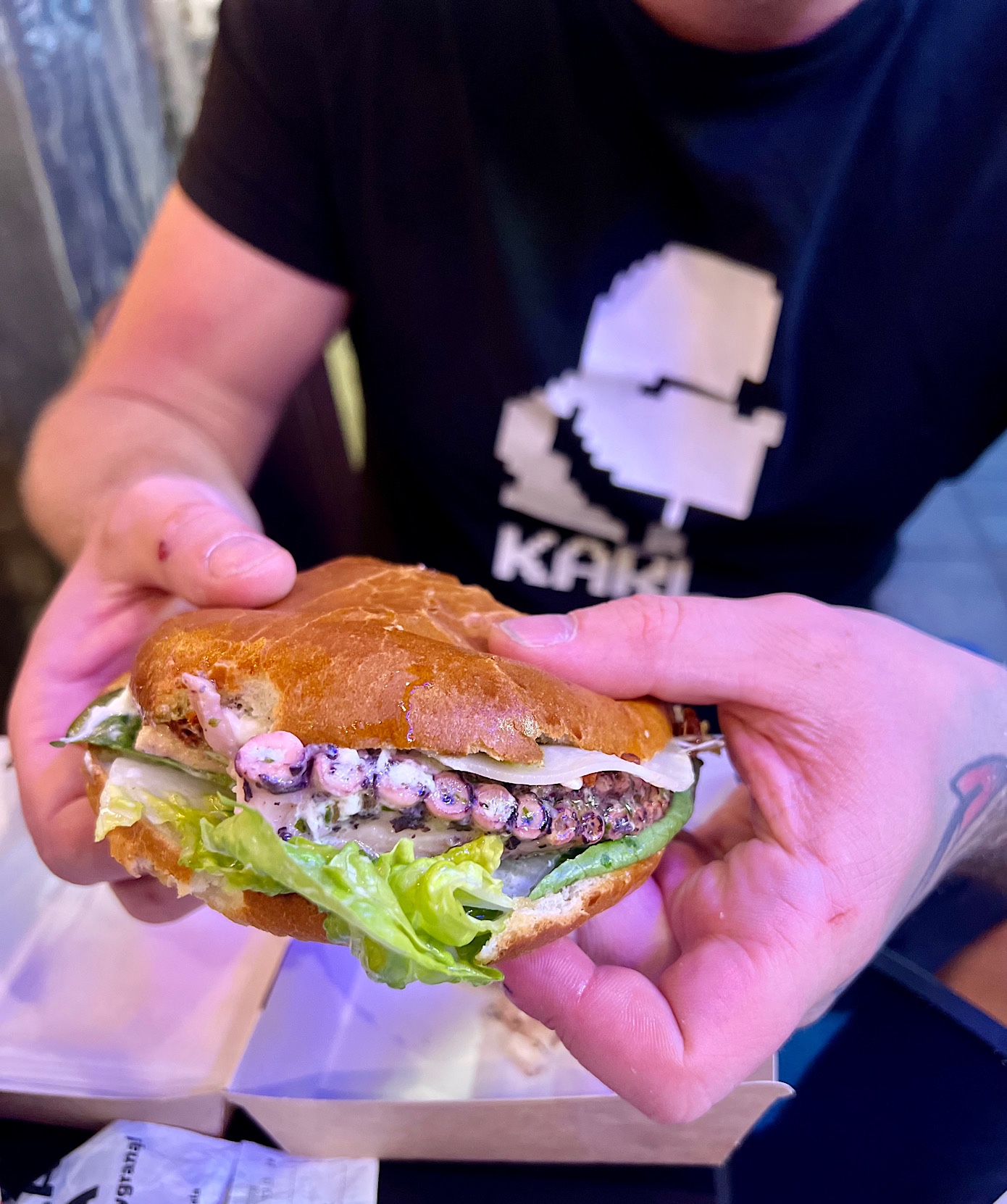 Któregoś dnia kolega T. zgarnął na testy szalenie drogą kanapkę z ośmiornicą. Smakowała wybitnie, ale trzeba przyznać iż cena powala…