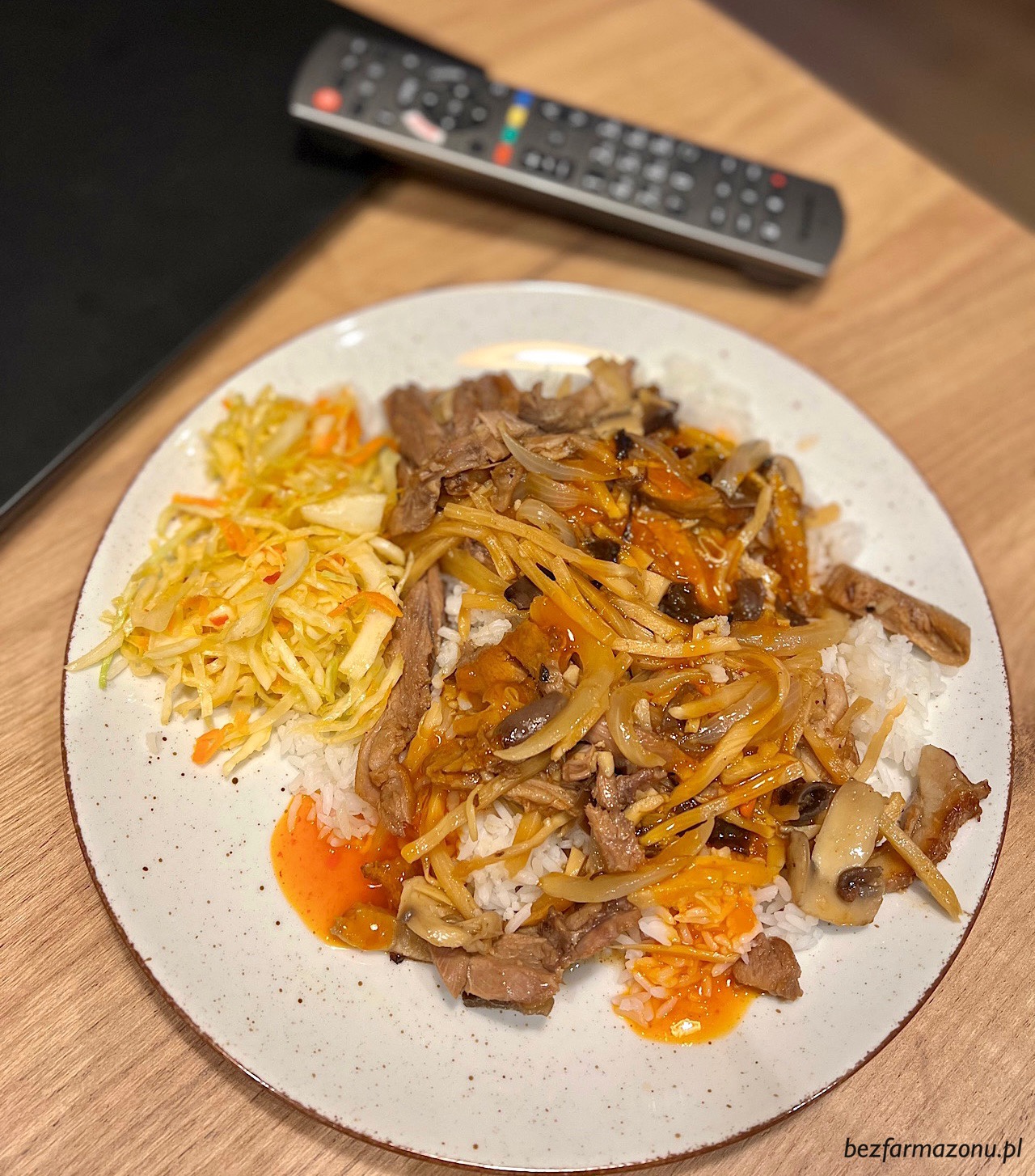 Zazwyczaj, celem uzupełnienia carbów dogotowuję dodatkowy worek ryżu  – i wtedy jest już idealnie, a taki obiad wystarcza spokojnie na dwa razy.