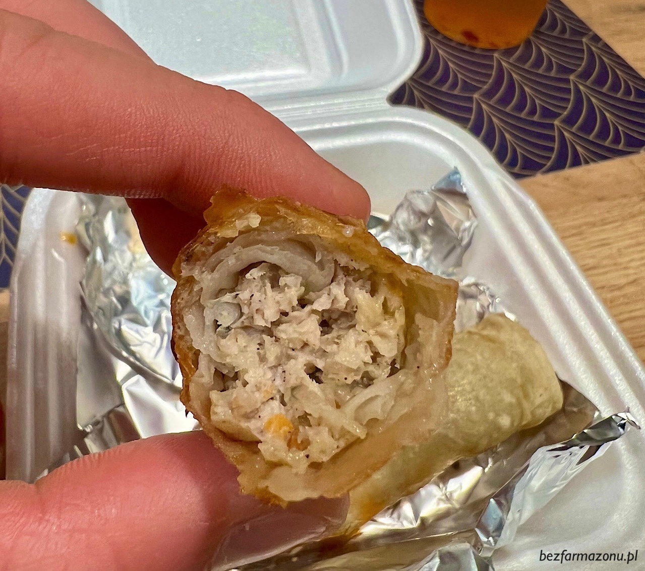 Sajgonki natomiast w porządku. Niedość że treściwe, to i przyjemnie chrupiące. Nie wiem czy wyrobu własnego czy również kupowane, ale dają radę. No dobra mogłyby być odrobinę mniej tłuste z zewnątrz, ale wystarczy wytrzeć je papierowym ręcznikiem i będą okey.