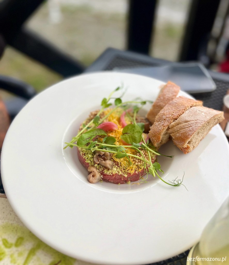 Z krótkiej karty zaordynowaliśmy cztery dania główne oraz przystawkę w formie tatara z polędwicy wołowej (49 PLN), który był najsłabszym ogniwem na stole. Suche mięso podano ze świeżym pieczywem, lecz kompletnie bez jakiegokolwiek masła. No cóż – nie był to befsztyk życia.