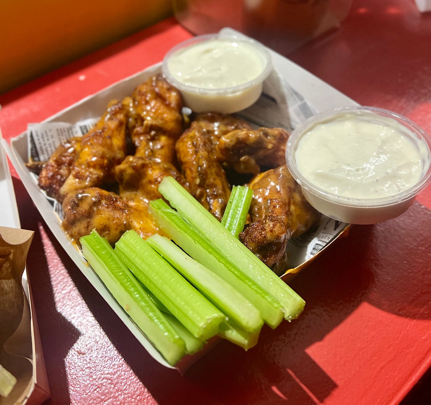 Z potężnej oferty spróbowaliśmy również skrzydełek Buffalo w lepkiej, słodko – ostrej glazurze w towarzystwie sosu na bazie sera blue cheese (25 PLN) oraz fenomenalnego kurczakburgera Słodziaka (34 PLN) z super chrupiącą panierką i soczystym drobiem (w pełni od zera przygotowanym przez nich) w otoczce słodkawych nut z miodowo – musztardowej glazury oraz sosu mango – jalapeno. Miłe chrupnięcie dawały tutaj pikle, sałata i prażona cebulka. Mistrz!