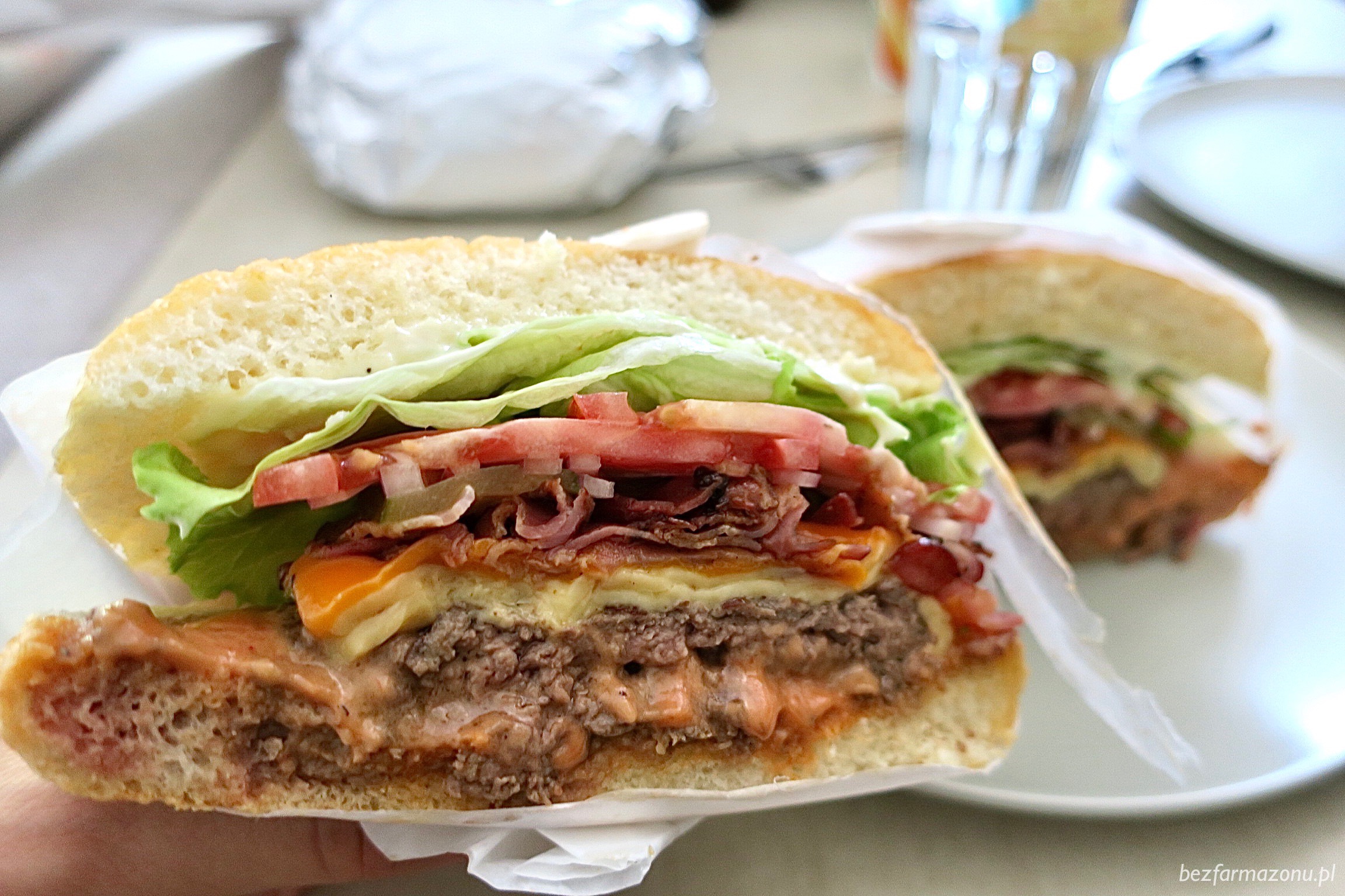 A jak smakowały? Kurczę rewelacyjnie! Te skubańce są naprawdę wybitne. Ich kombinacje są spójne i przemyślane, a nie zestawione na ślepo, jak to się czasem zdarza u innych. Wszystkiego jest tyle ile trzeba, a proporcje pomiędzy mięsiwem, dodatkami i grubością bułki są dobrane perfekcyjnie. Na zdjęciu widać również idealnie wysmażone pod zamówienia mięsa: na górze well done, poniżej medium.