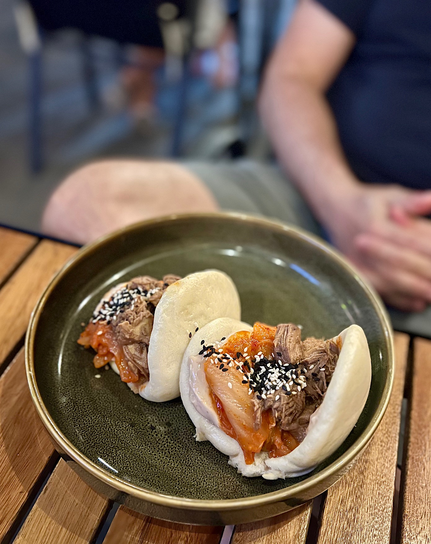 W lipcu 2024 wbiliśmy ze znajomymi na piwko oraz coś na ząb. Ja byłem już po kolacji, więc za strawę podziękowałem. Ekipa poprosiła o bułeczki bao z kaczką (39 PLN) oraz pickę salame piccante (48 PLN).