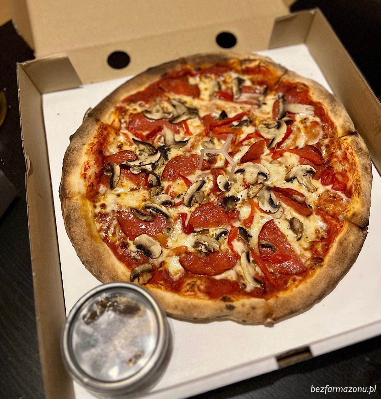 Placki smakowo są wporzo, ale przyjechały kompletnie miękkie. Nie chrupało tutaj nic – ani spód, ani brzegi, więc stwierdzam z całą stanowczością, że zdecydowanie lepiej wchodzą dnia następnego po kilkuminutowym podgrzaniu na patelni pod przykrywką. Wtedy spód staje się twardy i chrupiący, składniki podgrzewają, a ser miło roztapia na wierzchu 🙂