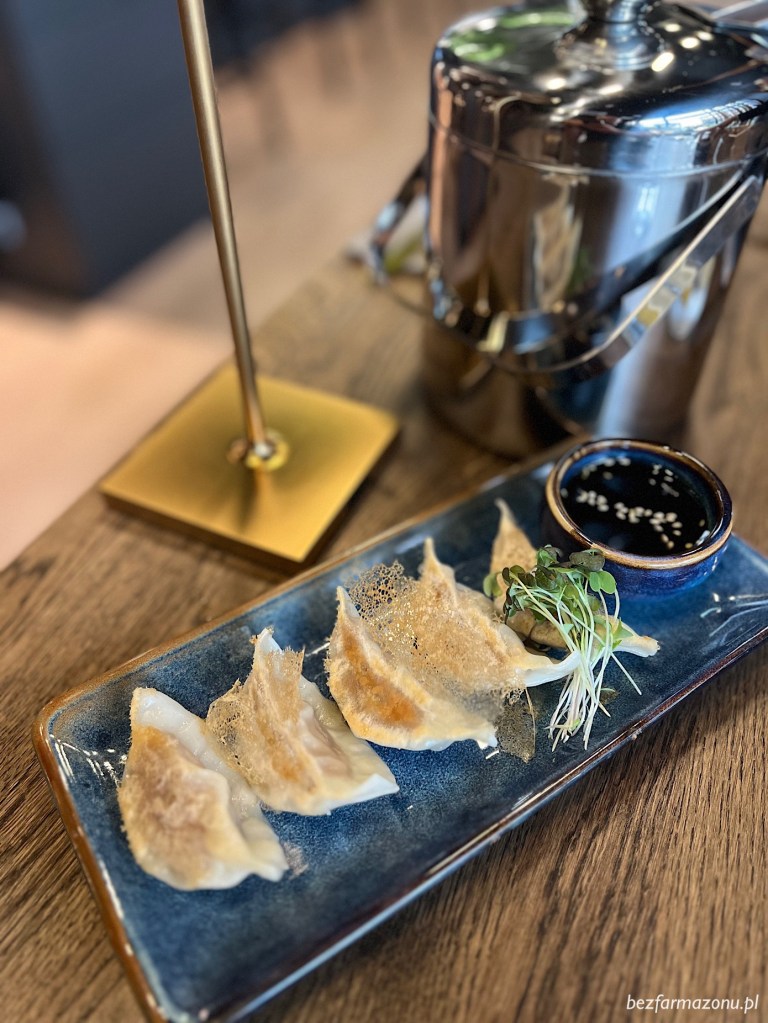 Rozpoczęliśmy od robionych na miejscu pierożków z kaczką (31 PLN) z sosem trufle tamari – takim bardziej premium sojowym i bez dodatku pszenicy, lecz z suplementem grzybowego „złota” czyli trufli.