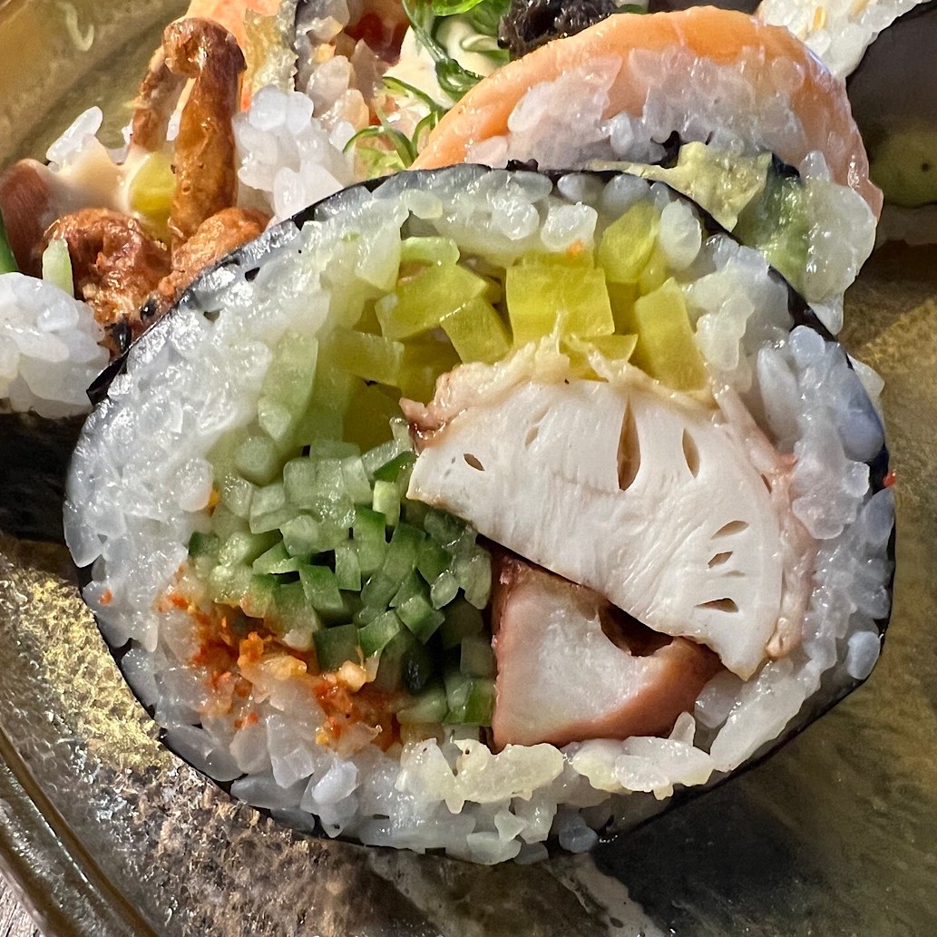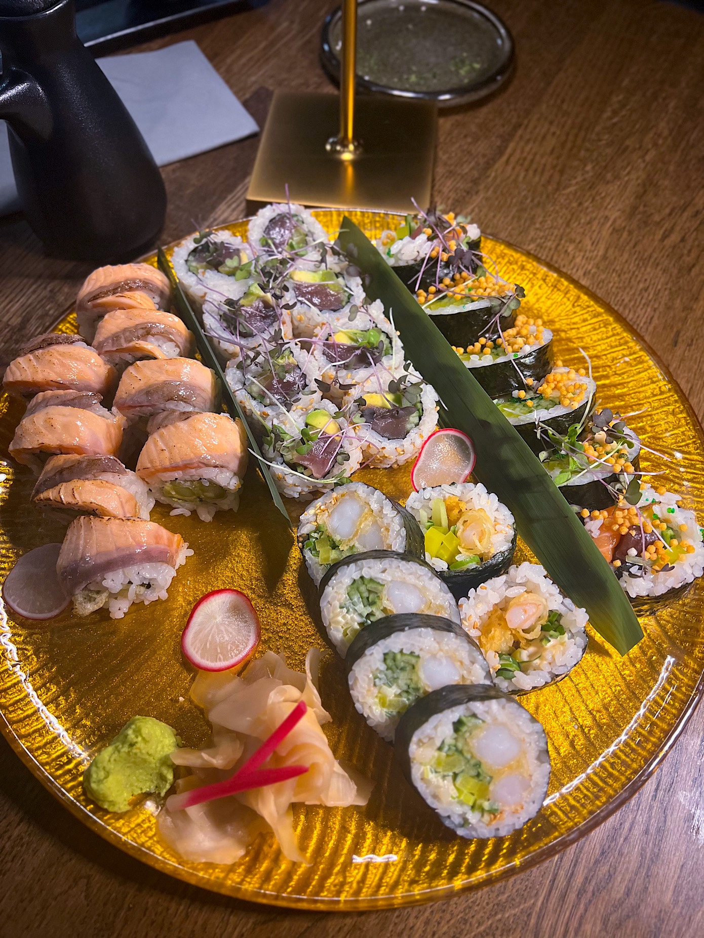 Zamówiliśmy rolki, a dwa kawałki nigiri z turbomaślanym łososiem dostaliśmy w prezencie po zwróceniu uwagi na drobne różnice względem opisu w karcie w dwóch rolkach.