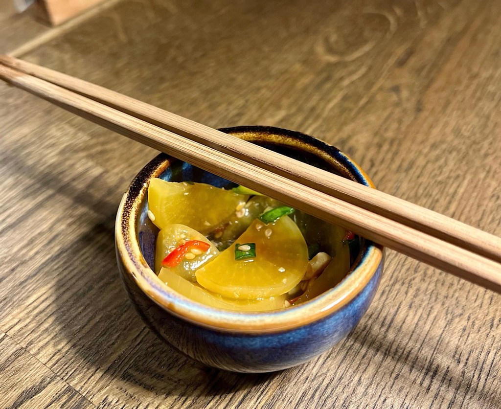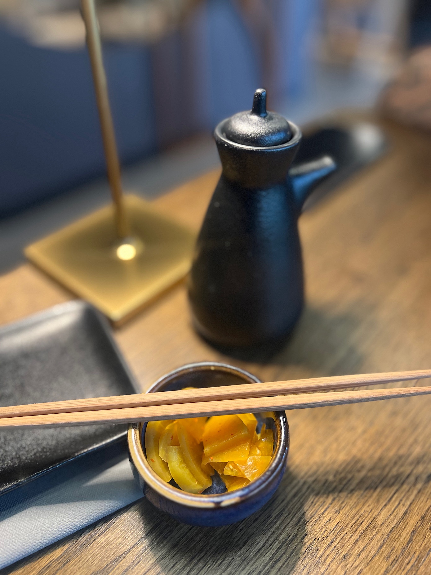 W oczekiwaniu na suszki, jak to zwykle tutaj dostaliśmy czekadełko w formie marynowanej na słodko rzodkwi.