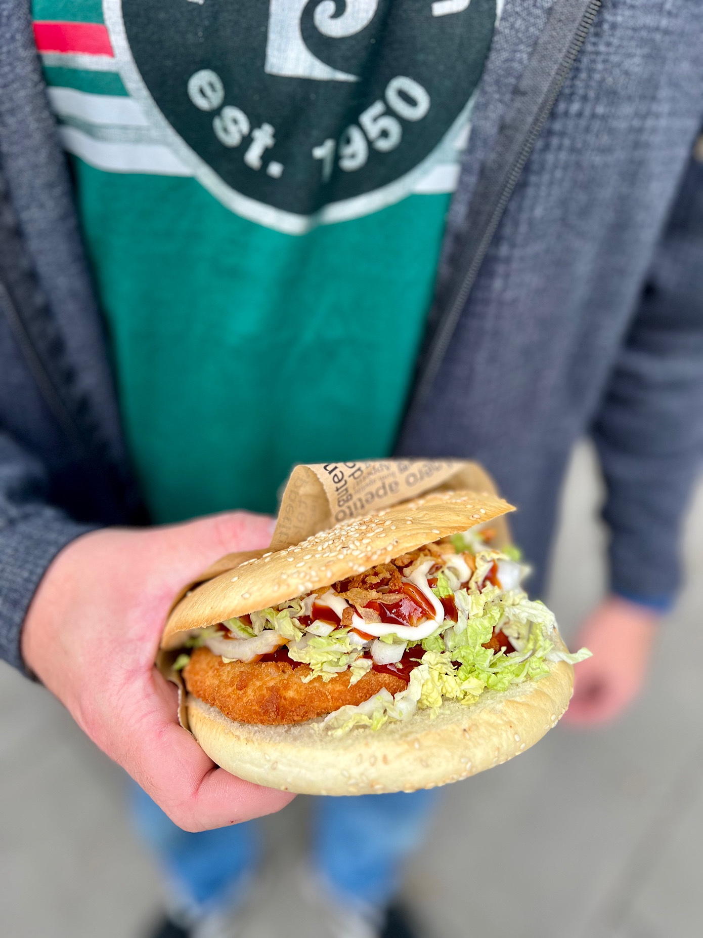 Buła ze smażoną panierowaną kurą niczym specjalnym nie zaskoczyła, ale przyjaciel M. spałaszował ją w mgnieniu oka.