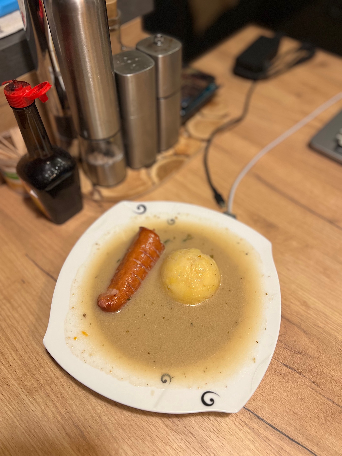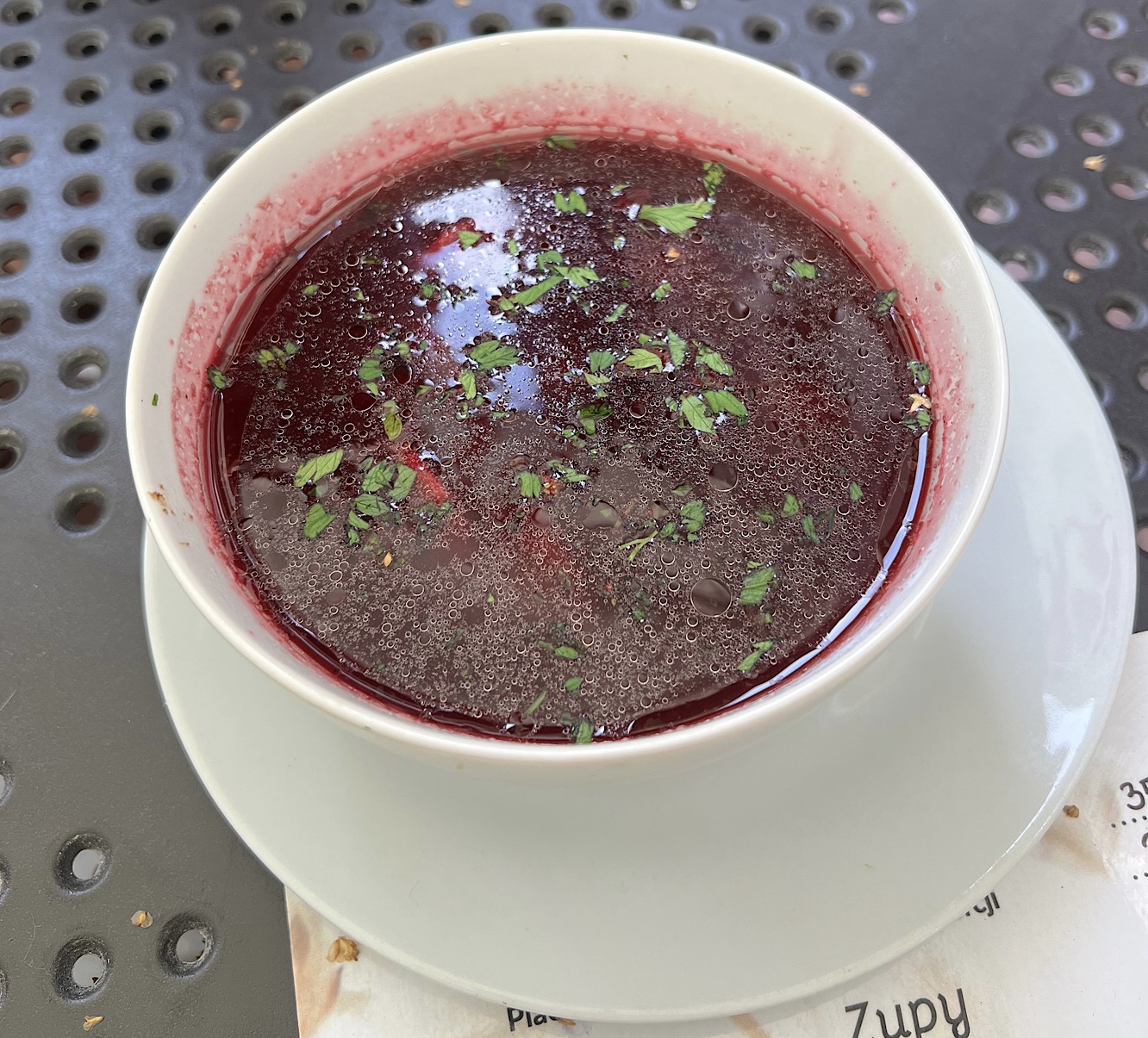 Sierpniowe 2024 obiadowe posiedzenie wraz z kolegą Ch. rozpoczęliśmy od barszczu z uszkami (17 PLN), który spore szanse pochodził z torebki oraz śledzia po japońsku (21 PLN).
