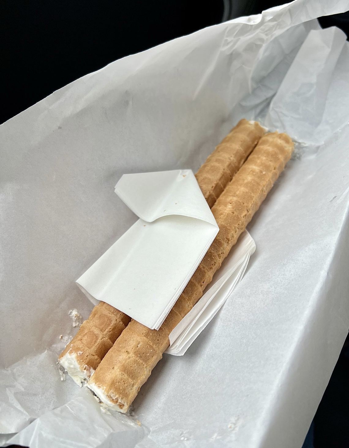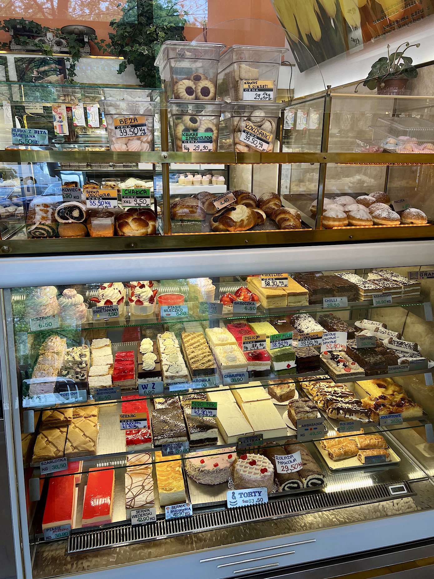Na Waszą uwagę bezapelacyjnie zasługują rurki z mega chrupiącymi wafelkami wypełnione nieprzesłodzona kremową bitą śmietaną (5,50 PLN). Pączkom i drożdżówkom za około piątaka niczego nie brakowało.