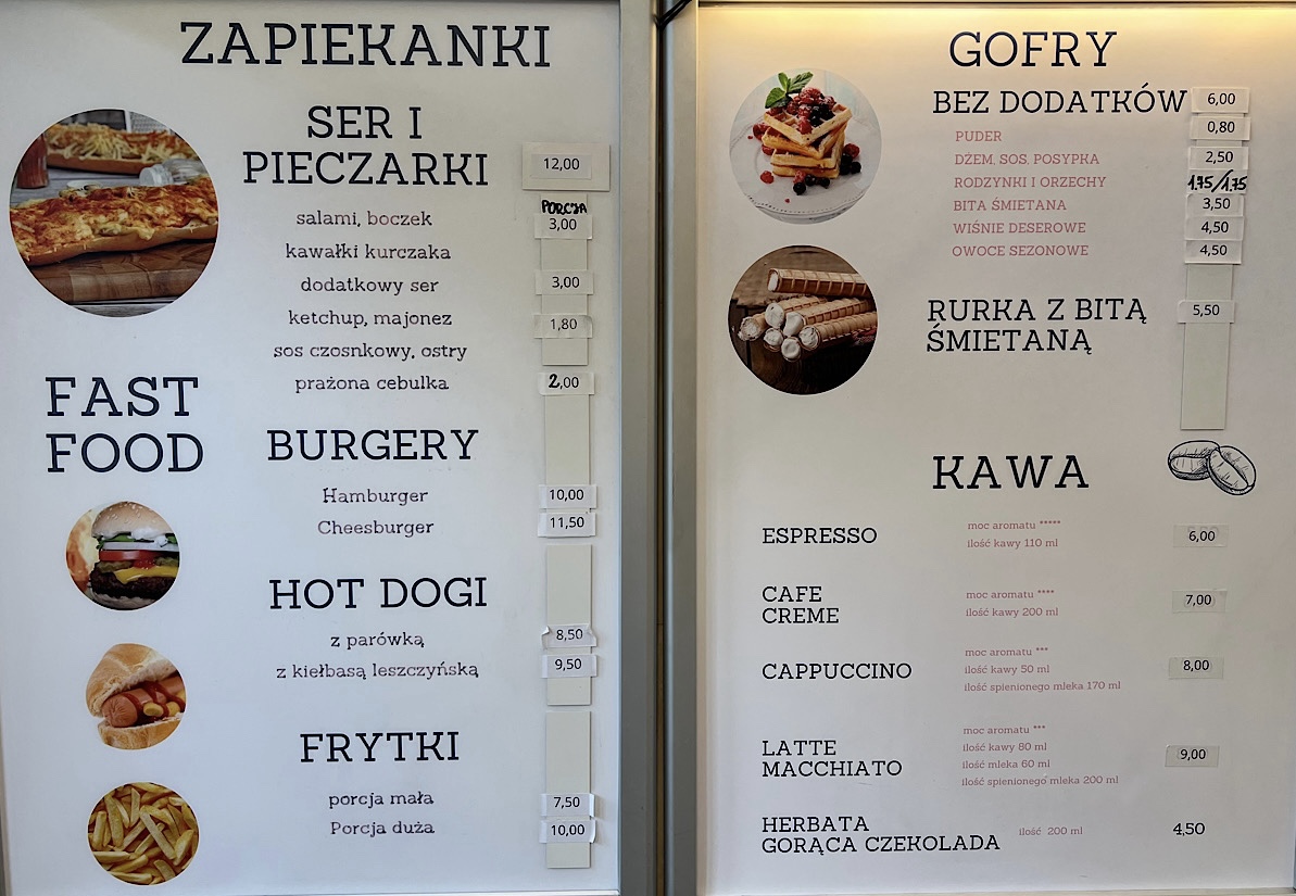 W środku raptem kilka stolików, więc ludzie zabierają dania na wynos lub dosiadają do innych osób. Ceny z końca października 2024 widzicie poniżej.