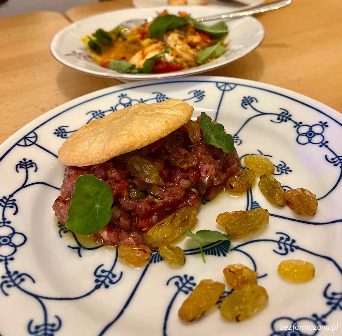 Tatar z jagnięciny (46 PLN) ekipa określiła bardzo świeżym i z racji występowania złotych rodzynek oraz kruszonego ciastka intrygującym.