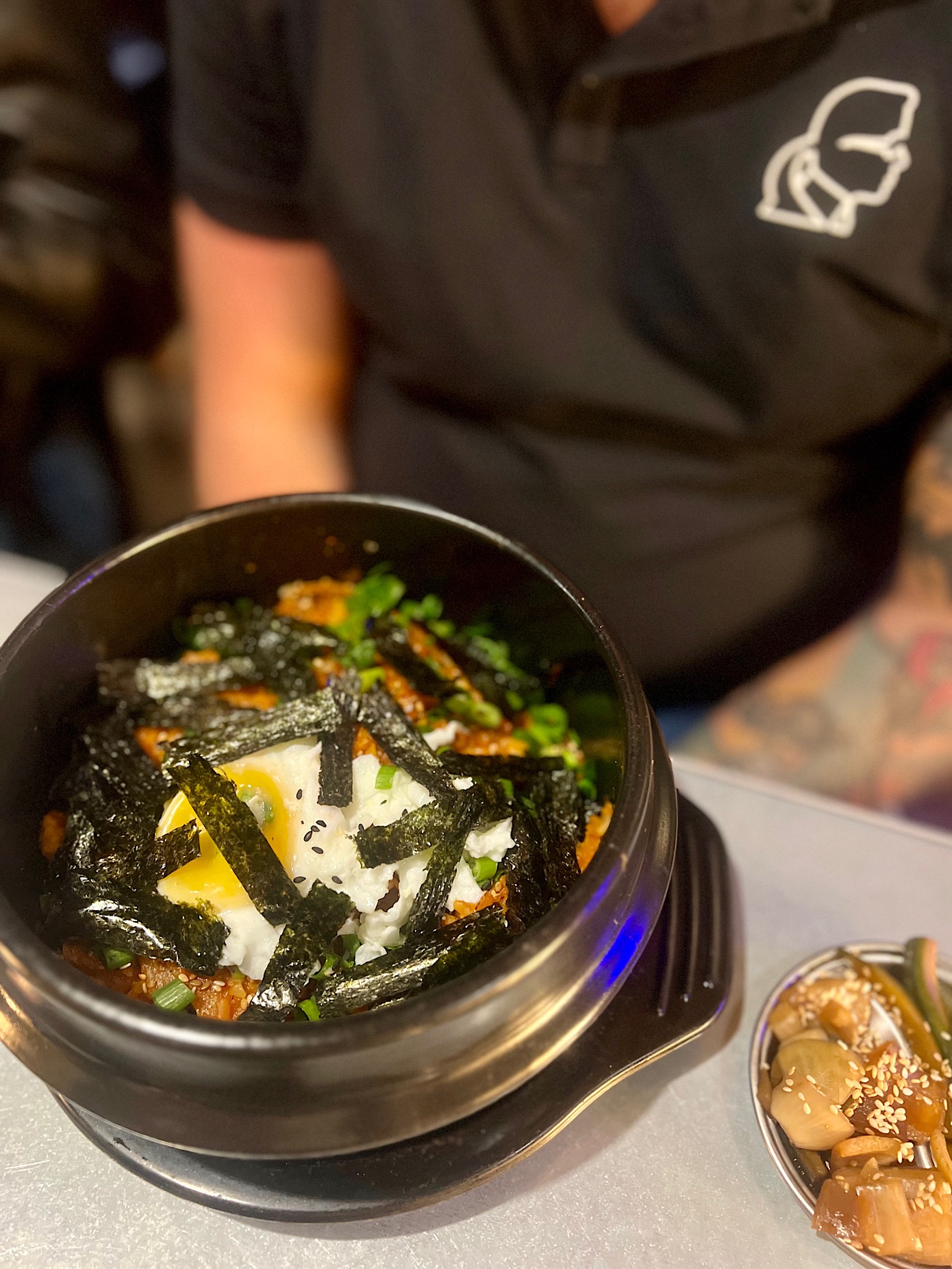 T. konsumował cały garnek Kimchi Fried Rice z szarpaną wieprzowiną (53 PLN), który dla nietolerujących ostrości będzie niezłym wyzwaniem.