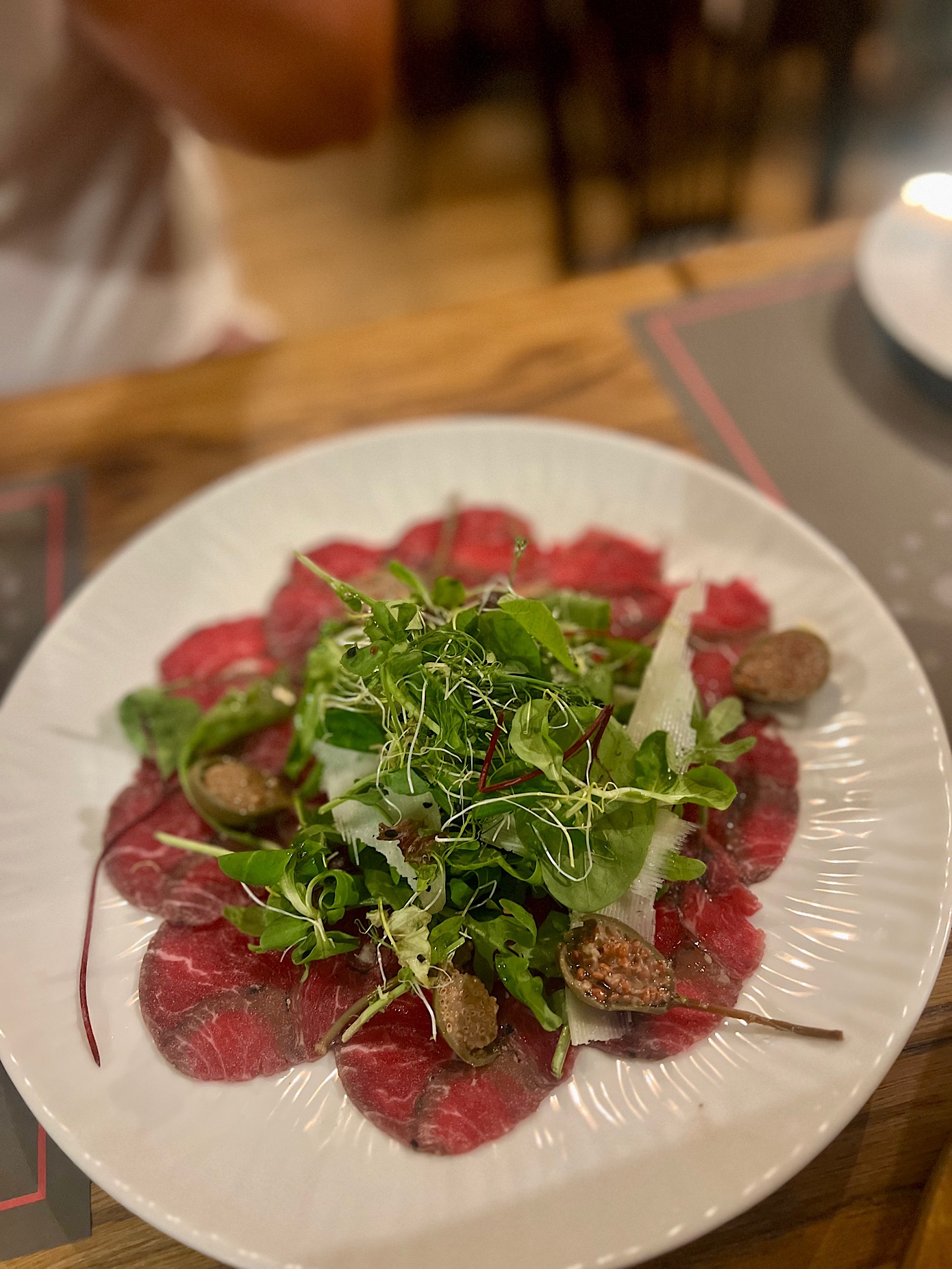 Smażone na maśle borowiki z cebulą (28 PLN) pachniały jak najcudowniejsze grzyby świata, a carpaccio (32 PLN) oraz tatar z polędwicy wołowej (40 PLN) przygotowano z bardzo dobrego mięsa oraz zaserwowano w towarzystwie klasycznych dodatków.