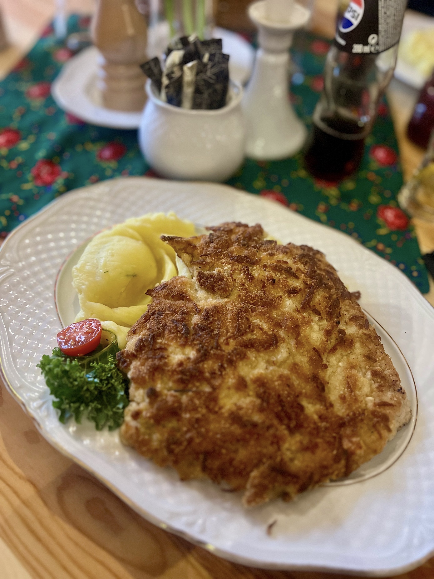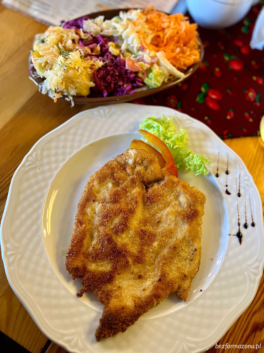 - szpadki schabowe z boczkiem (16 PLN) i ziemniakami (4 PLN) M. ocenił na plus.