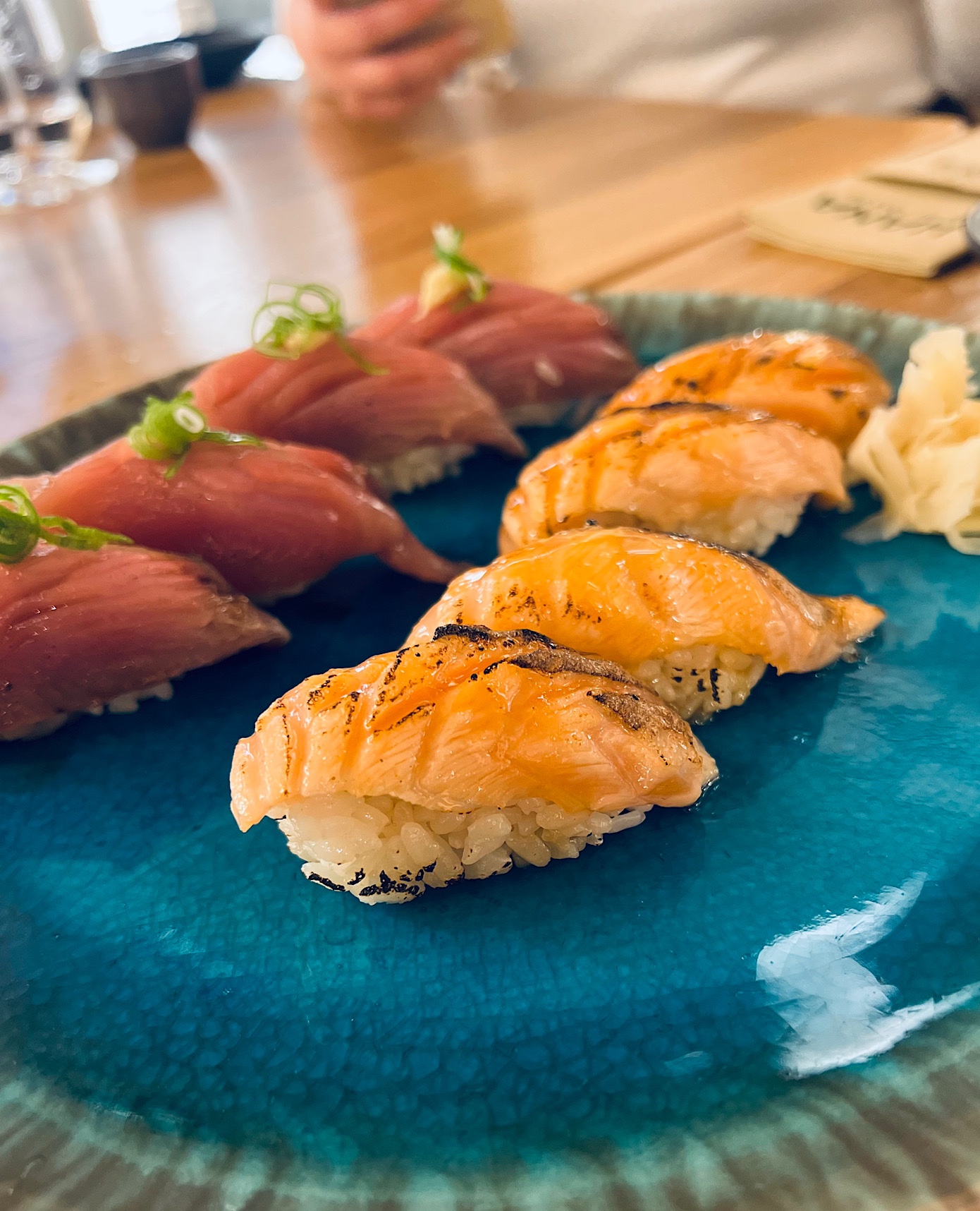 Kolację rozpoczęliśmy fenomenalnymi nigiri z tuńczyka (2szt. – 36 PLN) i łososia szkockiego (2szt. – 32 PLN).