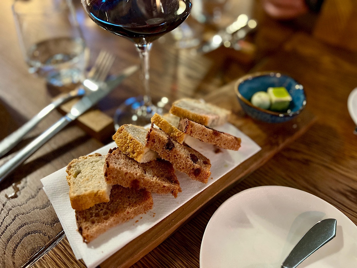 Obiad otworzyło amuse – bouche oraz domowe pieczywo z ziołowymi masłami.