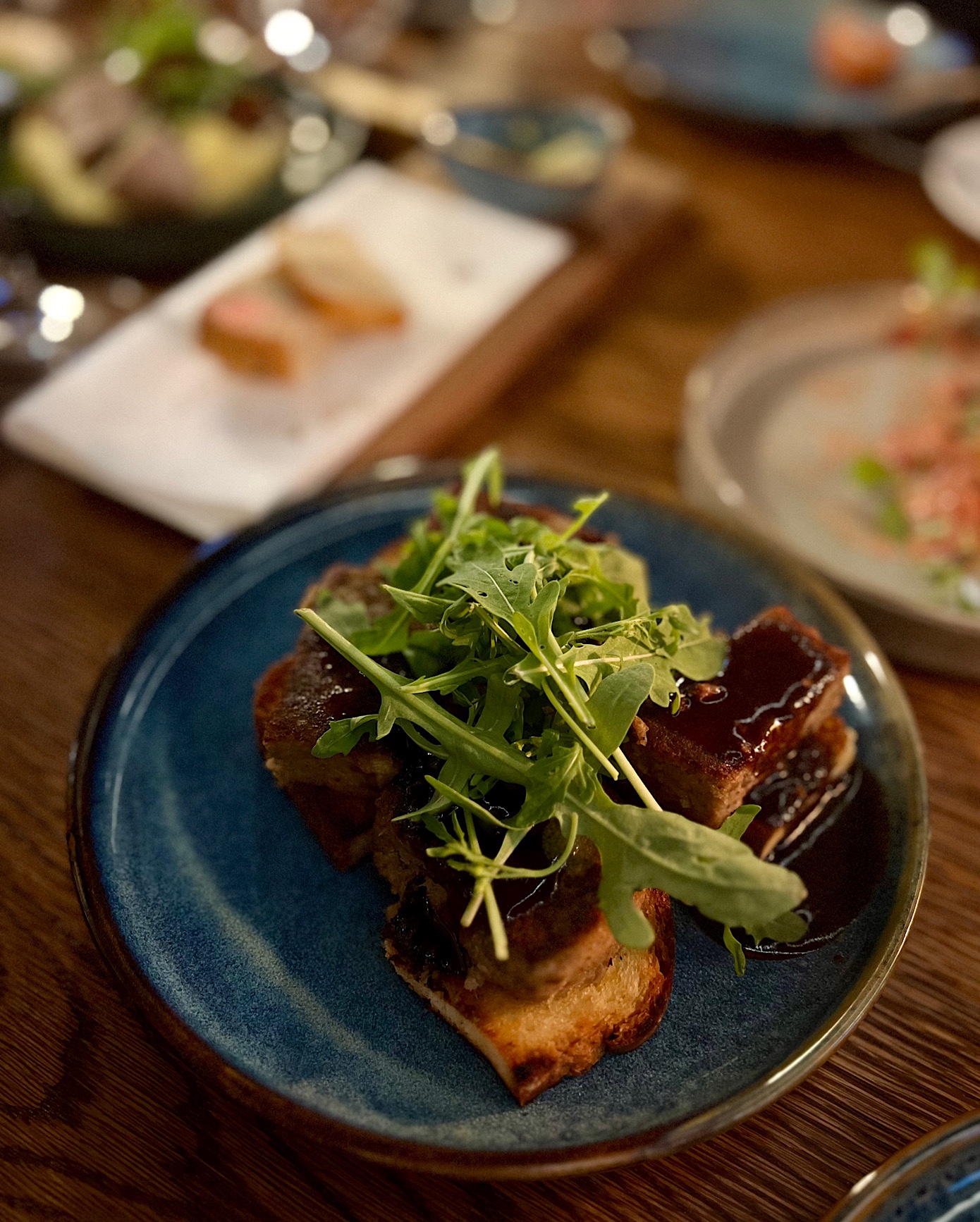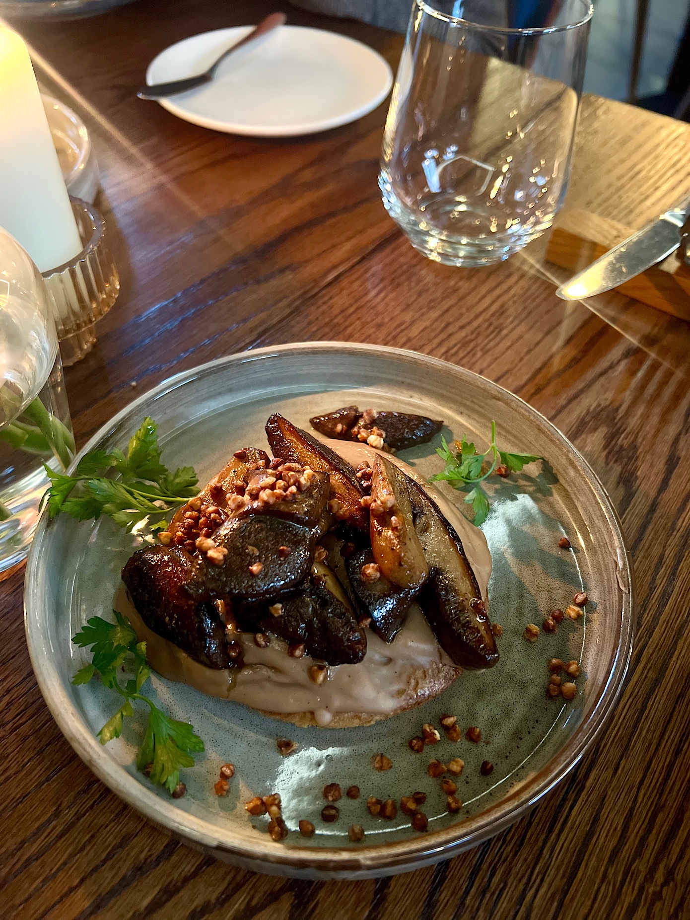 Kozi ser w panko rozbił bank – jego intensywny smak przełamano słodyczą gruszki w miodzie z Pasieki Morawskich oraz waniliowej brioszki z kruszonką (42 PLN). Pozycja obowiązkowa – spróbujcie koniecznie!