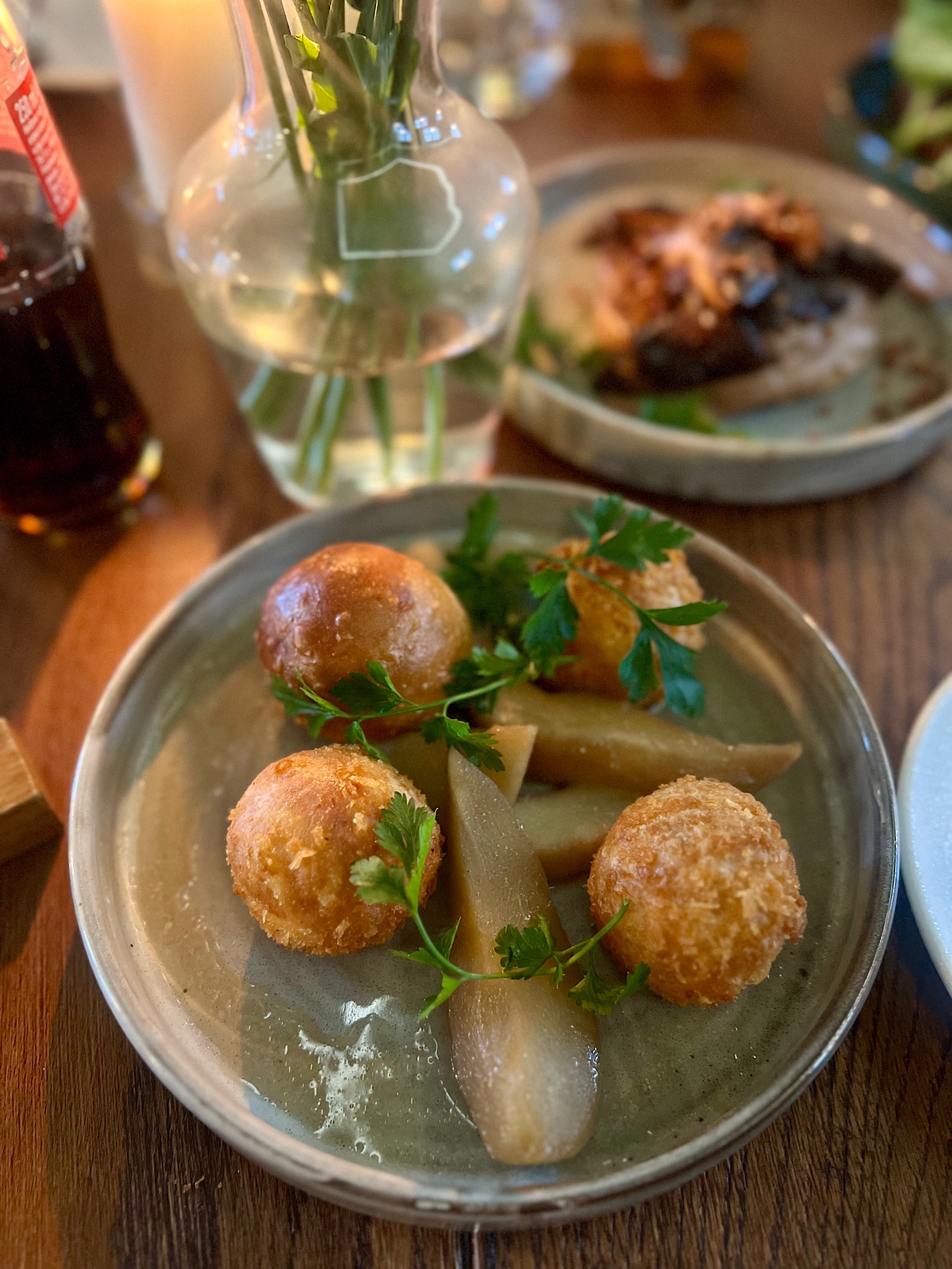 Kulinarne testowanie rozpoczęliśmy od przystawek, które serwuje się w formie food share’ingu. Pomysł świetny i od kilku lat w Krakowie szeroko znany – tutaj na plus przemawia ich polskość.