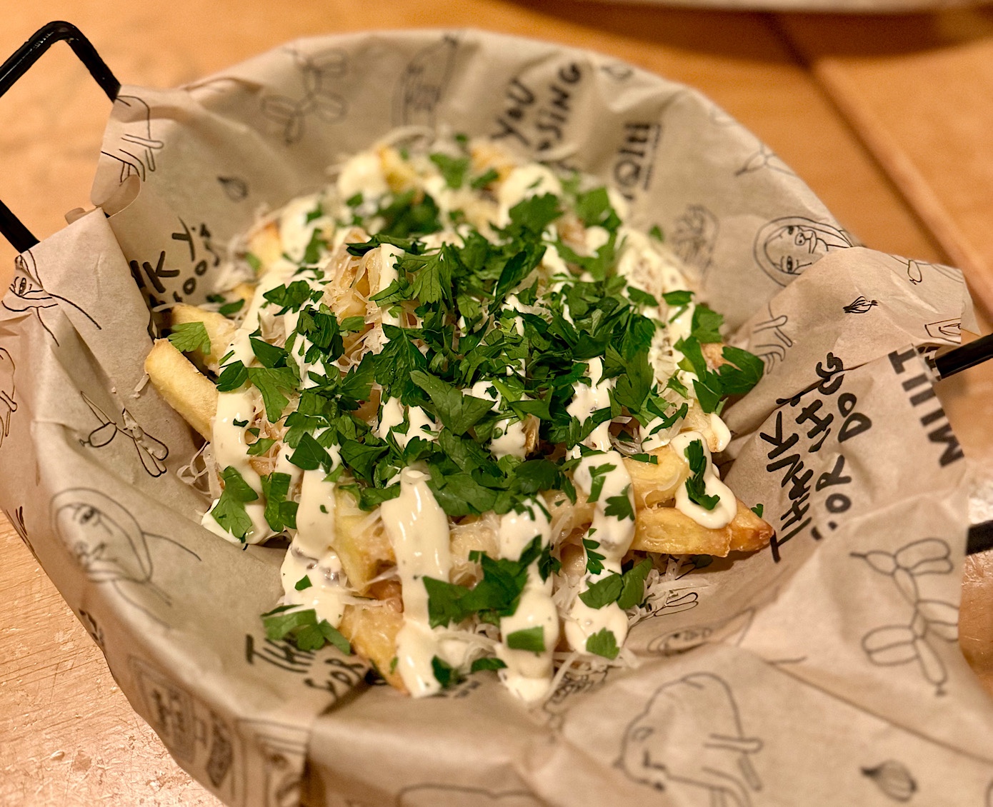 Piemont (35 PLN) dla mnie sporo lepsze. Mimo, iż na mrożonych frytkach to tarty parmezan, truflowy majonez i pietruszka robiły robotę.