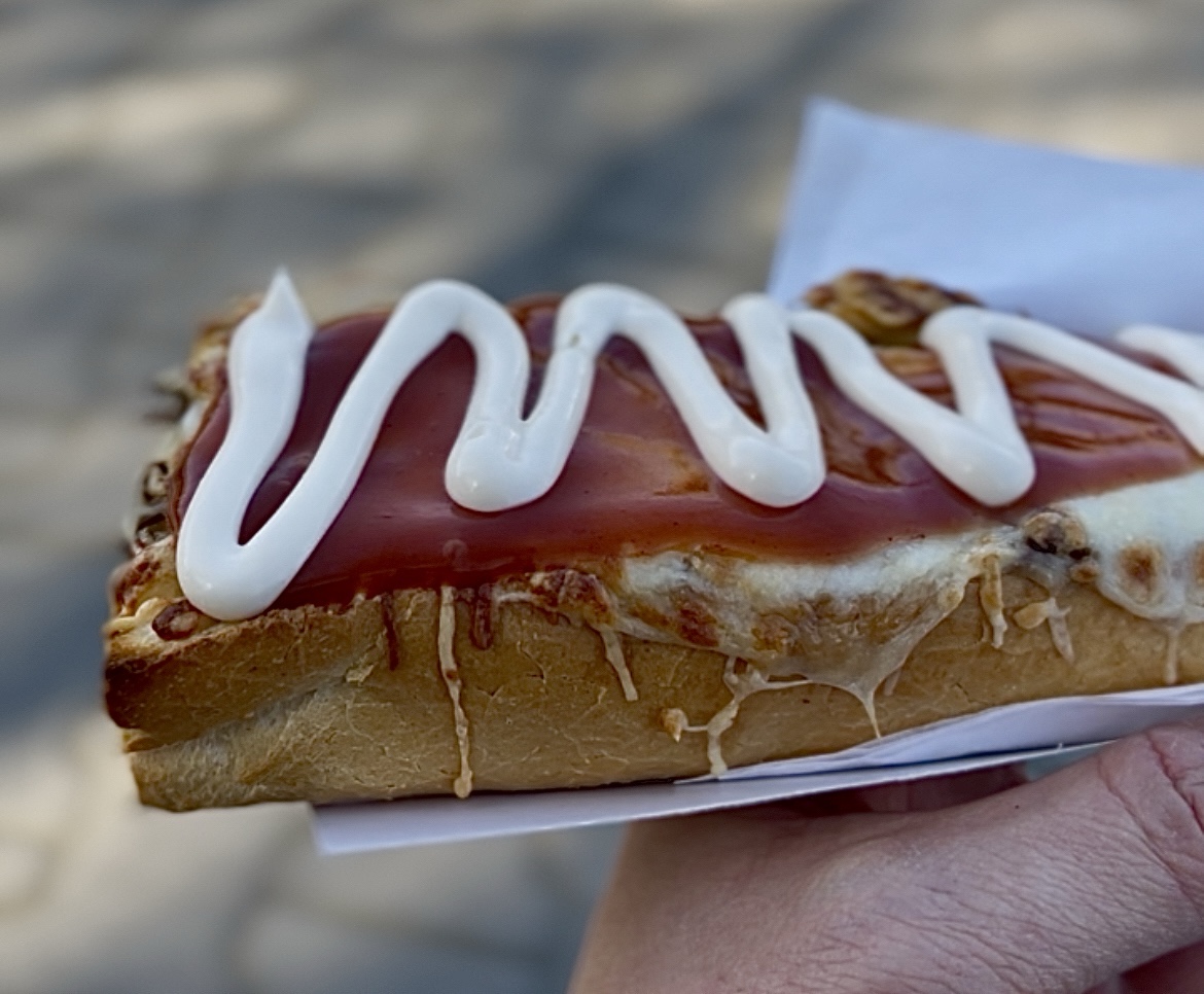 Buła jest chrupiąca z zewnątrz i miękka w środku. Ser zapieczony w sam raz. Po kilku gryzach w głowie zaczynają się pojawiać obrazy z przeszłości – miłej i błogiej.