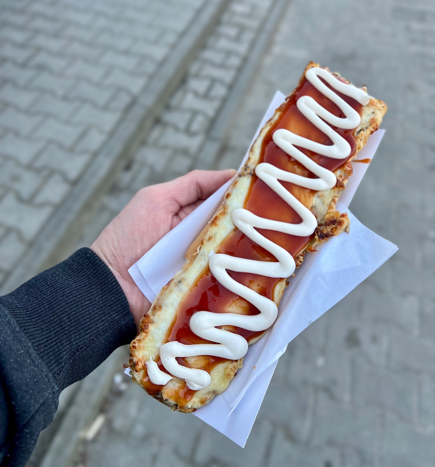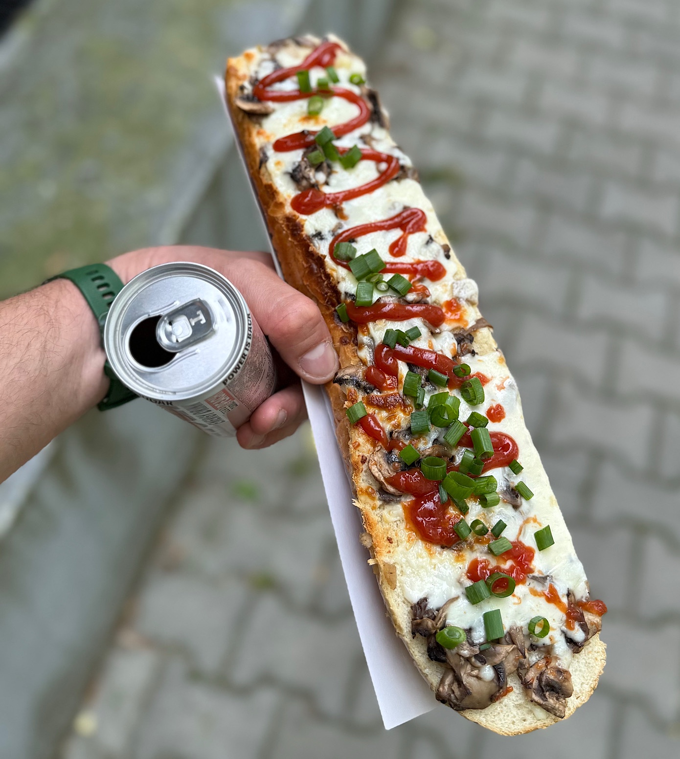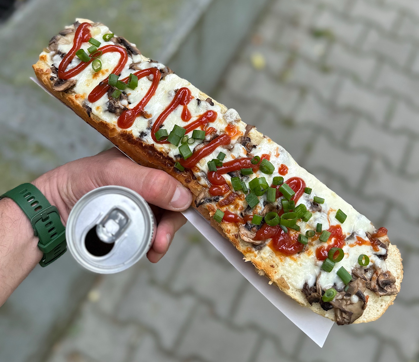 W kwietniu 2025 zapodałem klasyczną (15 PLN) z ketchupem i majo i oficjalnie potwierdzam – to uczciwa i smaczna zapieksa. Okey, w farszu brakowało mi smaku smażonej cebulki oraz większej ilości soli, ale wynagradzał to dobrej jakości, przypieczony na złociście ser.