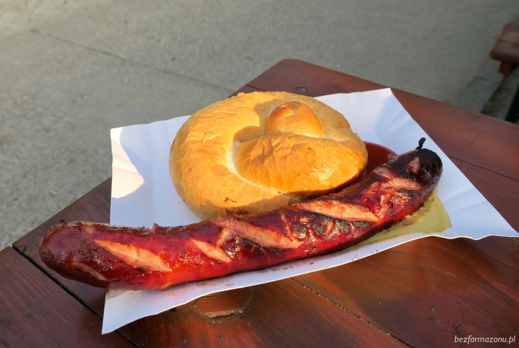 Podobnie sprawa się ma z pieczoną w folii kaszanką. Ta ma mocny smak i aromat, a w połączeniu z kiszoną kapuchą, cebulką i bułą karmi żołądek jak trzeba.