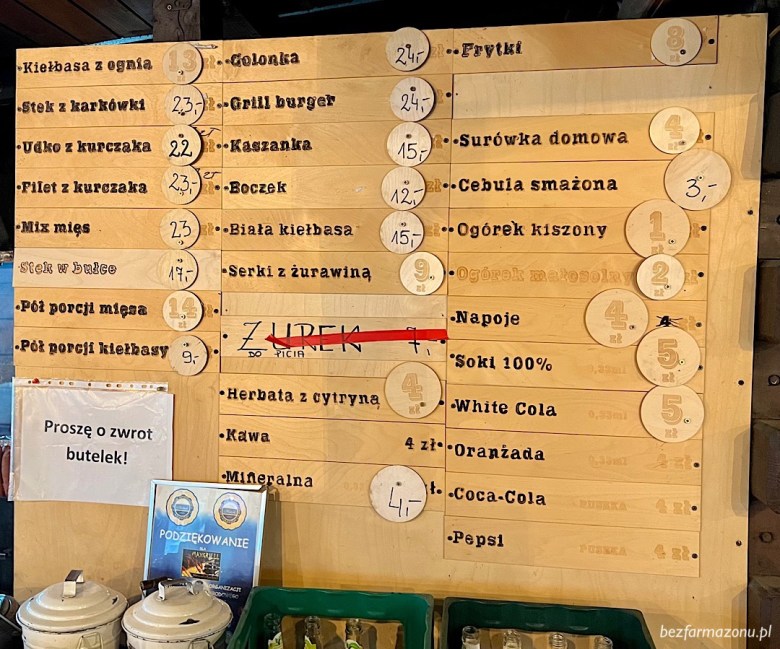 Aby zjeść należy odstać chwilę w kolejce do okienka, później przekazać w nim swoje zamówienie, a na końcu zapłacić gotówką lub kartą. Jeśli zamówicie coś innego niż kiełbę, to dostaniecie odpowiedni żeton.