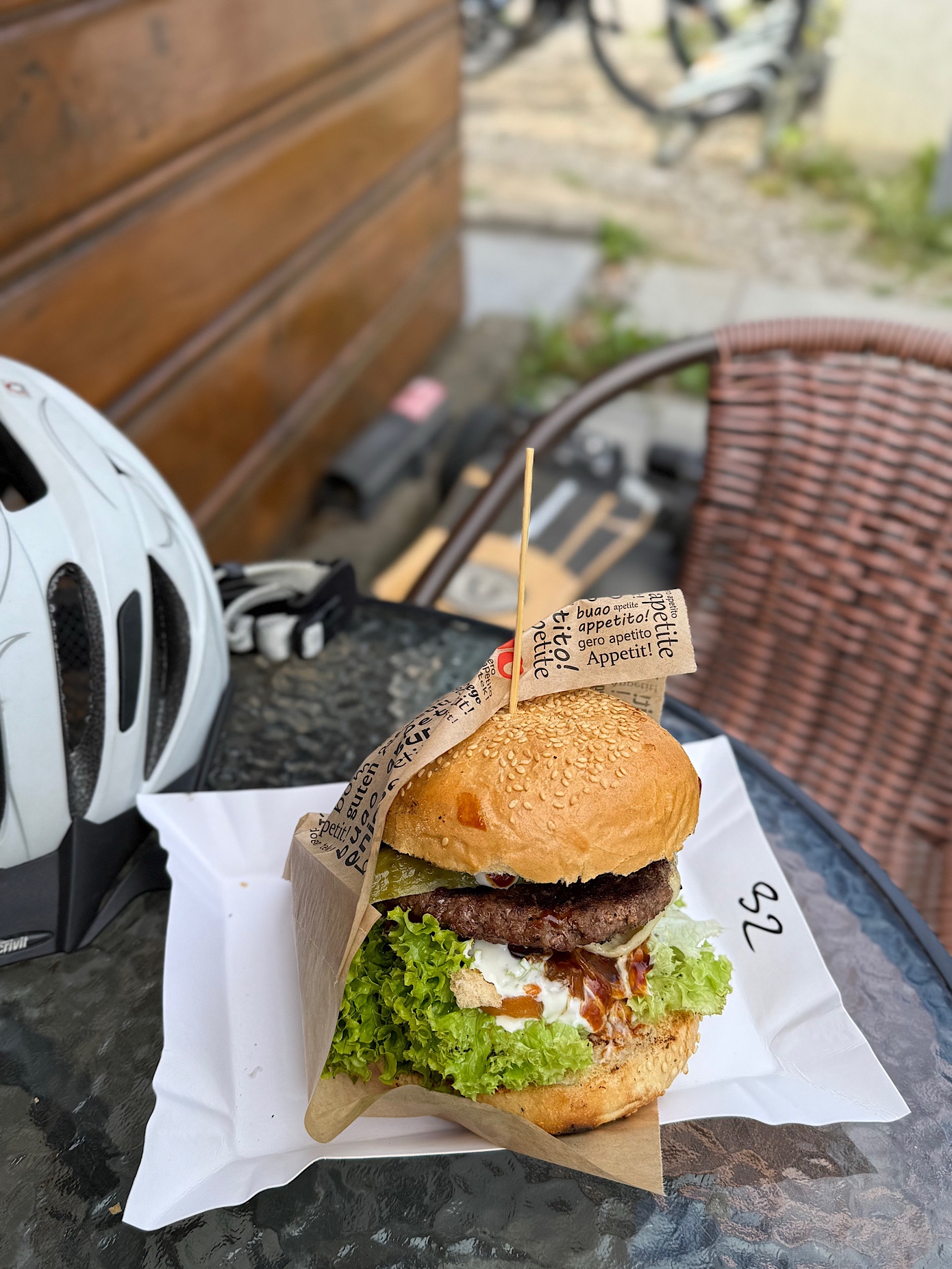 W lipcu 2025 po bardzo długim, bo ponad trzyletnim czasie tutaj niebytności podjechałem na desce i poprosiłem o burgera (35 PLN). Czekałem długo, bo około dwadzieścia minut, ale się opłaciło.