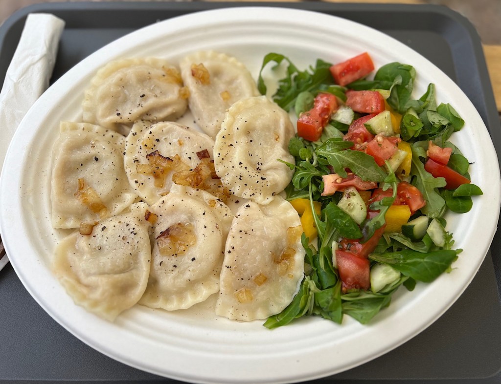 Pierogi charakteryzują ciastem grubszym, lecz nie męczącym. Ruskie mają wporzo farsz – doprawiony i z uczciwą proporcją ziemniaków do twarogu.