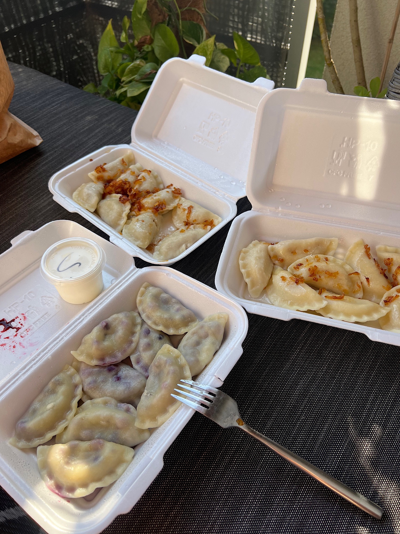 Potrzebowałem strawy na kilka dni do przodu, więc poleciałem po bandzie i oprócz ruskich zamówiłem dodatkowo z mięsem, szpinakiem i fetą oraz kapustą i grzybami.