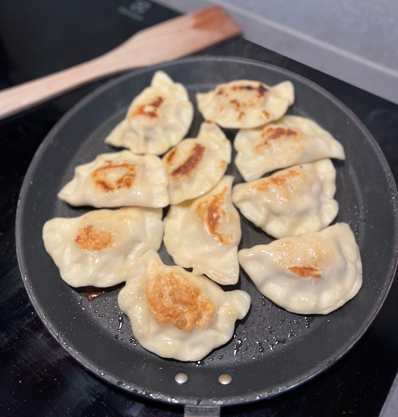 Jednym słowem – rewelka! 10 jędrnych sztuk z odpowiednio doprawionym farszem oraz sprężystym nie za grubym ciastem i przysmażoną na chrupiąco – złoto cebulką w 100% spełniło moje oczekiwania. Zarówno ruskie, jak i z mięsem topka! Na borówkowe, K. również nie narzekała.
