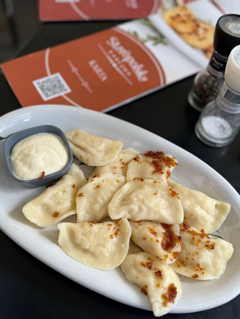 I wiecie co? Ich ruskie (45 PLN) w sierpniu 2025 smakowały szerze bardzo dobrze. Niezłe ciasto, zero rozgotowania, miły farsz o dobrym balansie, przyjemna smażona cebulka, no i pełnotłusta śmietana!