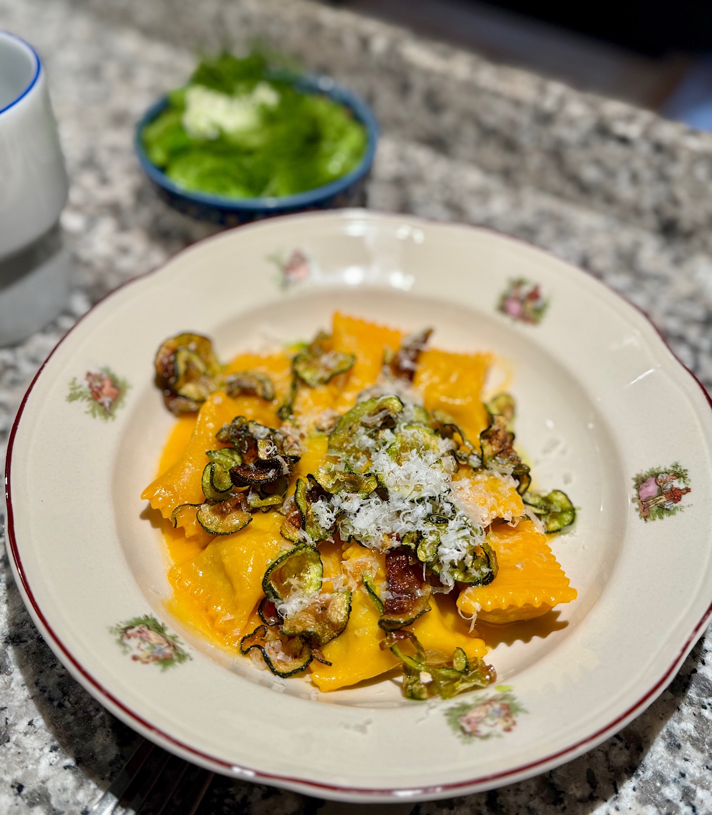 Z sekcji głównej wybraliśmy przepyszne pierożki z bryndzą, czarnuszką, smażoną na oleju cukinią i lubczykiem (59 PLN).