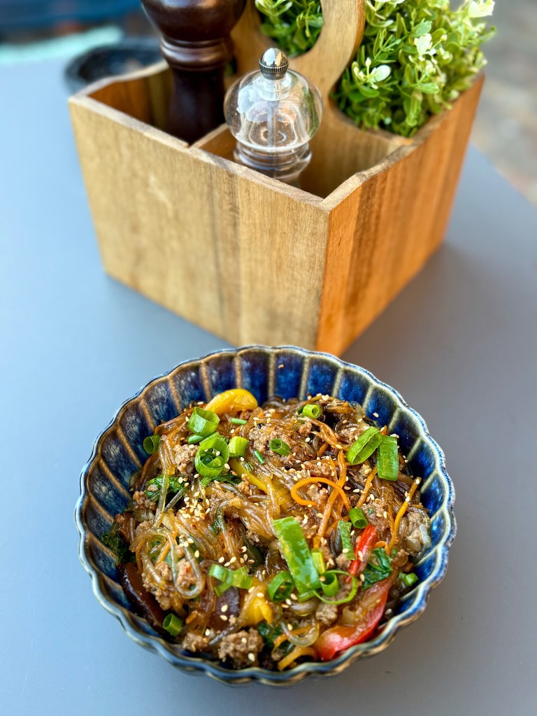 W sierpniu 2025 przed treningiem potrzebowałem węgli. Skierowałem się do Laby i poprosiłem o Japache z wołowiną (40 PLN). Szalenie gorącą miskę z makaronem z batatów i mielonym mięsem otrzymałem po około 15-tu minutach.